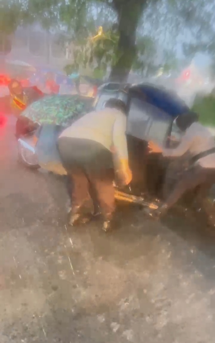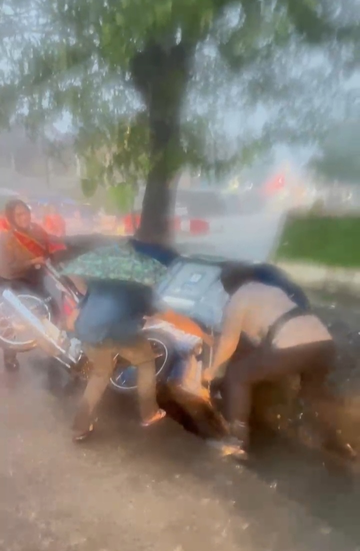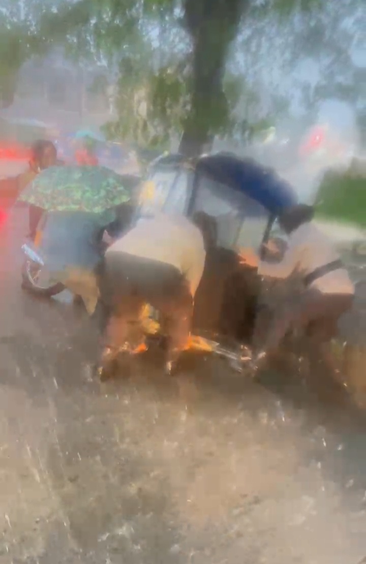 Kejadian ini bermula saat hujan deras mengguyur wilayah Gowa, yang membuat jalanan licin. Seorang pengendara bentor hilang kendali dan terperosok ke dalam saluran air.