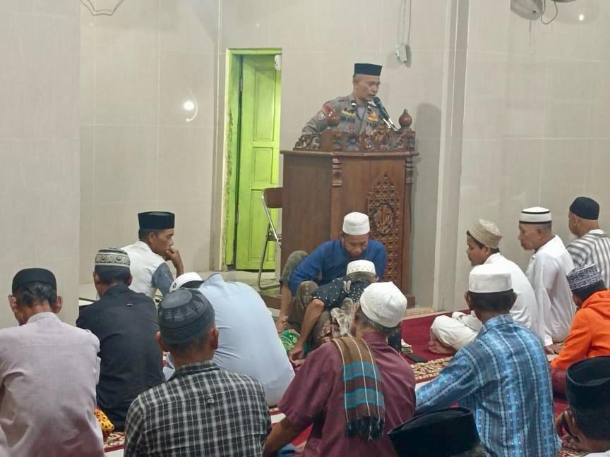(Inspirator)-Takalar, 3 Maret 2025 – Dalam rangka menjaga keamanan dan ketertiban masyarakat selama bulan suci Ramadhan, Bhabinkamtibmas Polsek Polut sebagai pembina di Desa Lassang Barat, AIPDA Abd. Malik, melaksanakan safari Ramadhan sekaligus menyampaikan himbauan kamtibmas di Masjid Nurul Huda Anging Mammiri, Desa Lassang Barat, Kecamatan Polongbangkeng Utara, Kabupaten Takalar, pada Senin (3/3/2025) pukul 19.40 WITA.