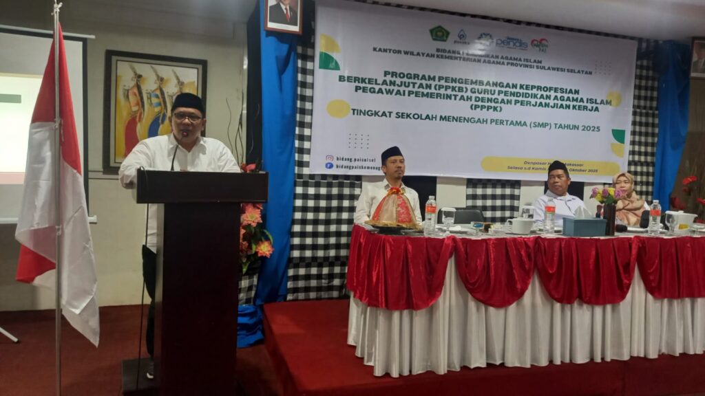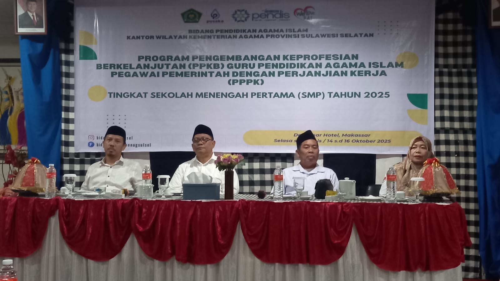 Program Pengembangan Keprofesian Berkelanjutan (PPKB) bagi Guru Pendidikan Agama Islam (PAI), di Hotel Denpasar, Jln Boulevard Makassar, Selasa hingga Kamis, 14 -16 Oktober 2025.