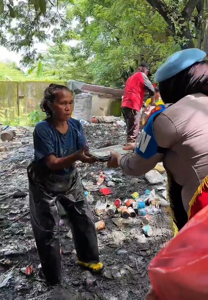 Kegiatan yang dipimpin oleh IPDA Hema, S.E. ini bukan sekadar pembagian makanan, melainkan juga wujud perhatian dan kasih sayang kepada mereka yang setiap hari berjuang mencari nafkah dari tumpukan sampah demi menghidupi keluarga.