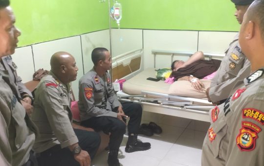 (Inspirator)-Kasat Samapta Polres Gowa AKP Aslamuddin bersama personelnya menjenguk salah satu ibu bhayangkari yang sakit, Kamis (29/8). Salah satu...