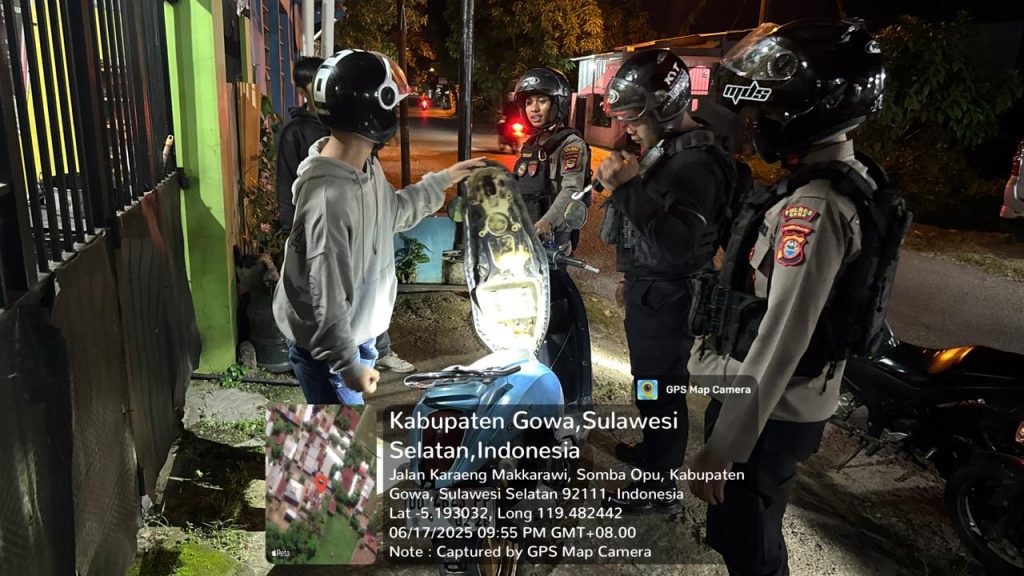 (Inspirator)-Dalam rangka menciptakan situasi yang aman dan kondusif serta menjaga stabilitas Harkamtibmas di wilayah Kabupaten Gowa, Unit Perintis Presisi Sat Samapta Polres Gowa menggelar Patroli Kegiatan Rutin yang Ditingkatkan (KRYD) dengan metode mobile hunting dan patroli dialogis, Selasa malam (17/6/2025).