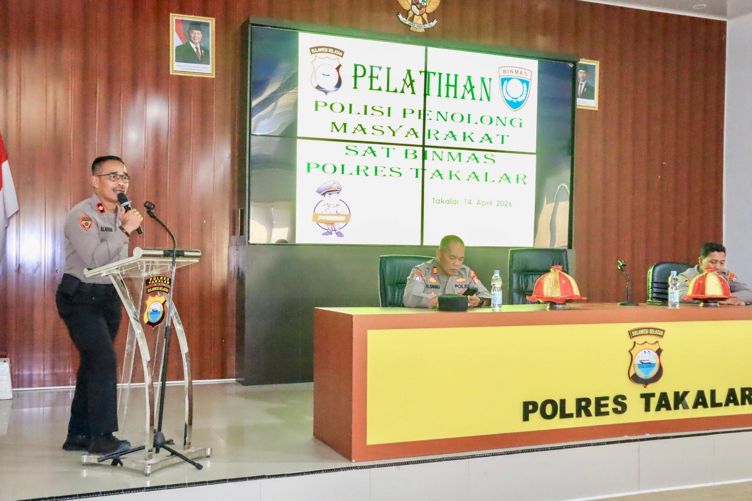 Upaya itu diwujudkan melalui Pelatihan “Bhabinkamtibmas sebagai Polisi Penolong Masyarakat” yang digelar di Aula Wicaksana Laghawa Mapolres Takalar, Selasa (14/4/2026).