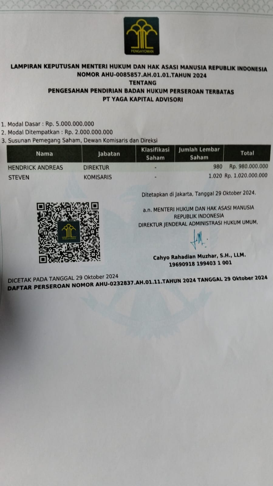 4). Akta notaris pendirian PT.Yaga Kapitol Advisori (YKA) .