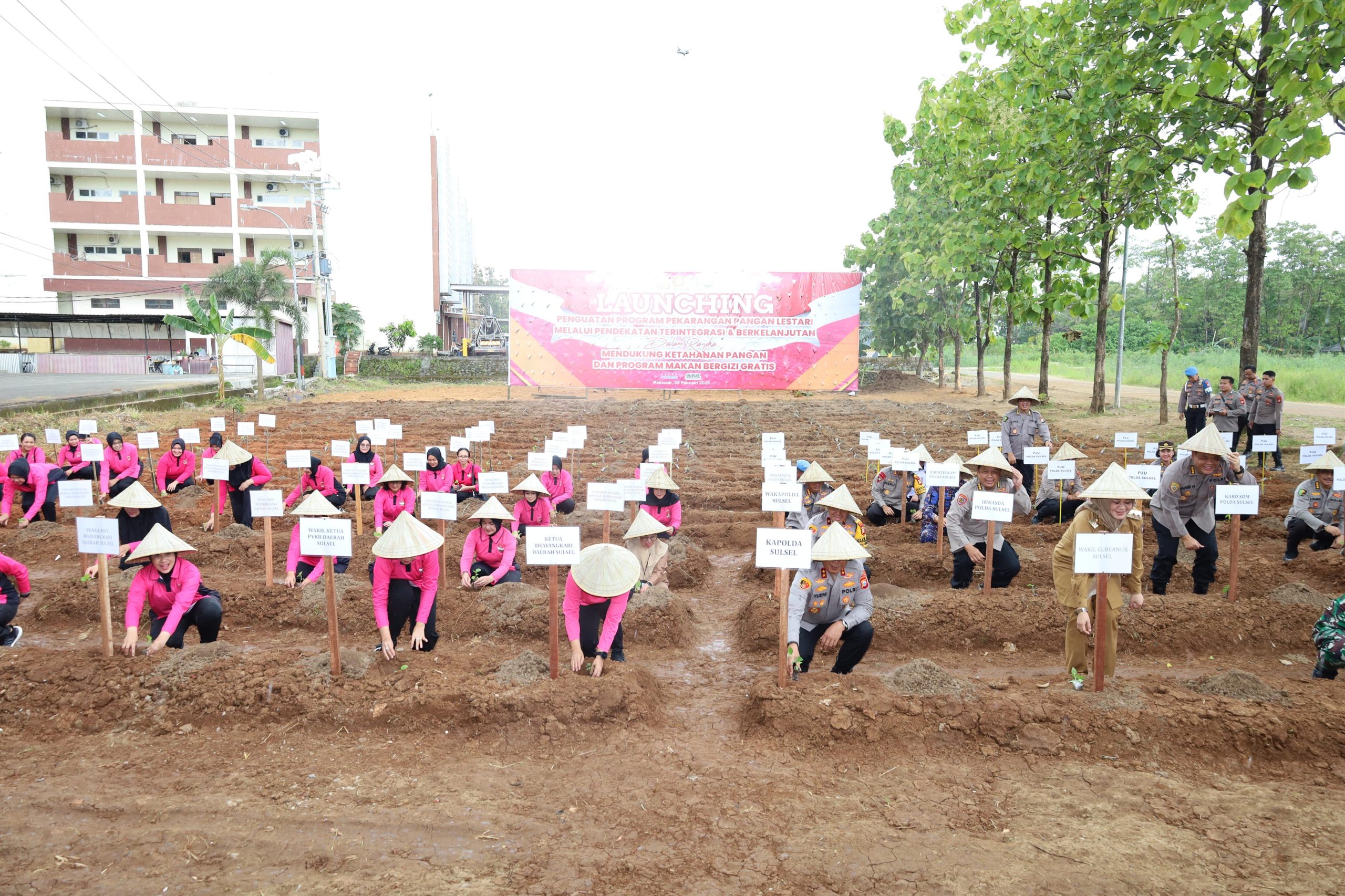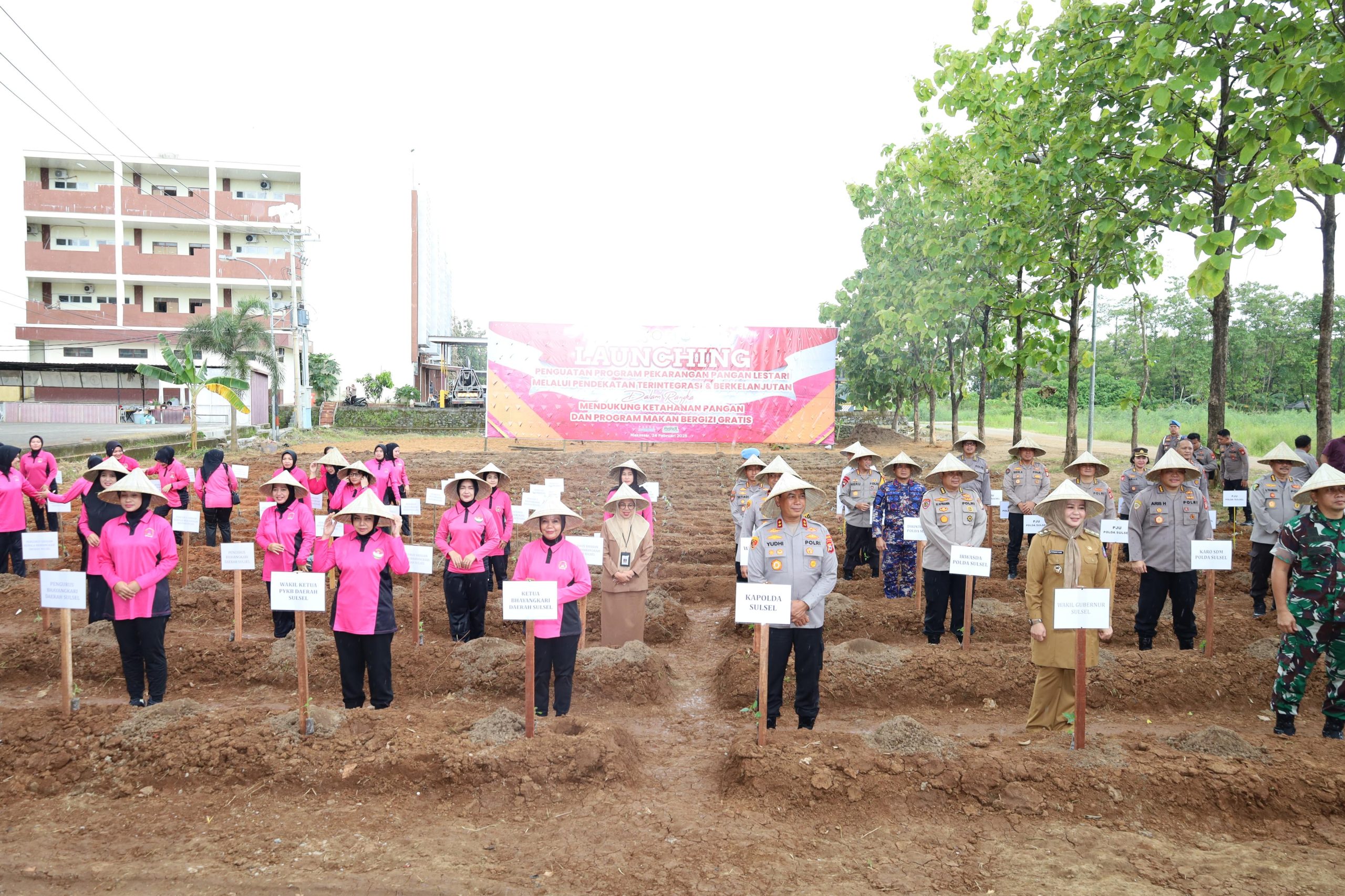 (Inspirator)-Kapolda Sulawesi Selatan, Irjen Pol. Yudhiawan S.H., S.I.K., M.H., M.Si., bersama Ketua Bhayangkari Daerah Sulsel Ny. Yunita Yudhiawan dan Pejabat Utama Polda Sulsel mengikuti Launching Penguatan Program Pekarangan Pangan Lestari melalui Pendekatan Terintegrasi dan Berkelanjutan yang dilaksanakan secara Secara Serentak di Mapolda Sulsel, Senin (24/02/25).