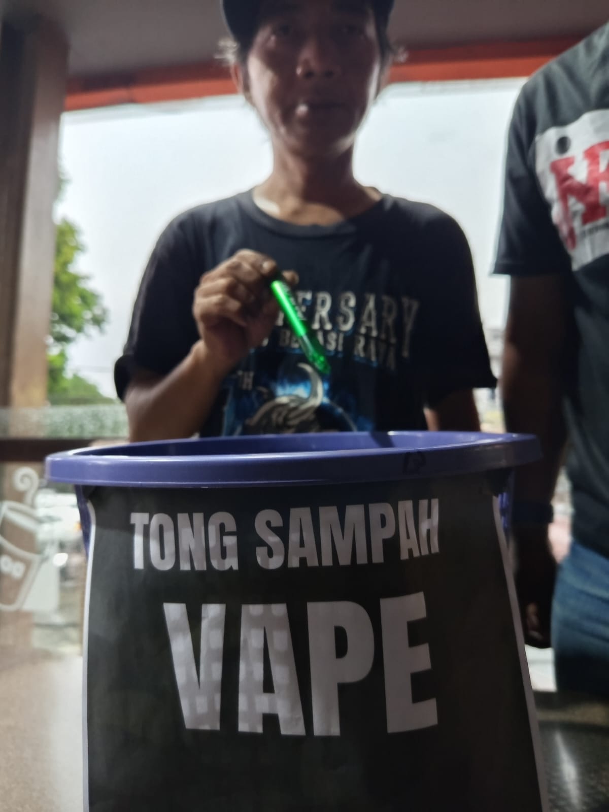 Dukung Rekomendasi BNN Melarang Peredaran Vape .acara yang berlangsung di gerai kopi di Kota Bogor Jawa Barat tersebut di hadiri berbagai perwakilan Pemuda ,Mahasiswa dan Elemen Masyarakat di Kota Bogor .. di Lokasi Acara terlihat secara simbolis Peserta melakukan hapening Art dengan Memasukan membuang Alat isap Vape dari berbagai jenis merk ke dalam tong Sampah sebagai bentuk dukungan keras Masyarakat Melarang Peredaran Vape