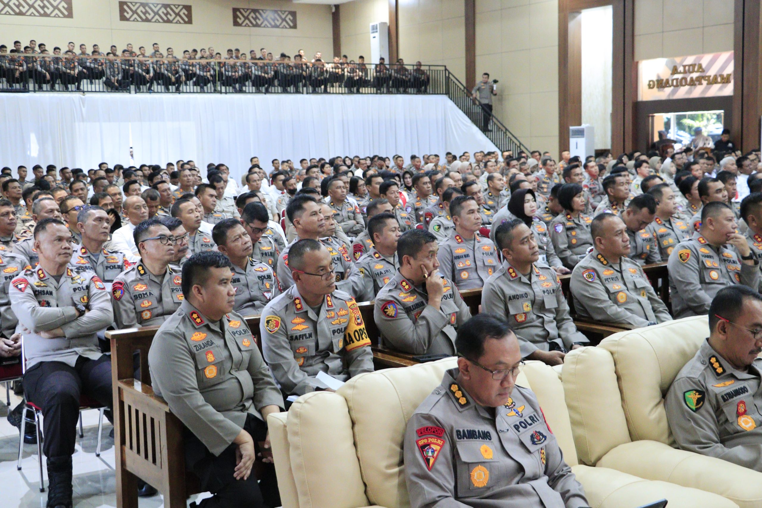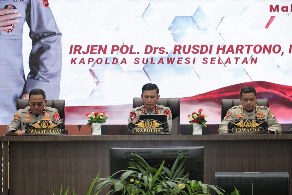 (Inspirator)-Kapolda Sulawesi Selatan, Irjen Pol. Drs. Rusdi Hartono, M.Si didampingi Wakapolda Sulsel Brigjen Pol Nasri, S.I.K., M.H. serta Pejabat Utama Polda Sulsel Melaksanakan Commander Wish di Aula Mappaodang Polda Sulsel, Senin (24/03/25).