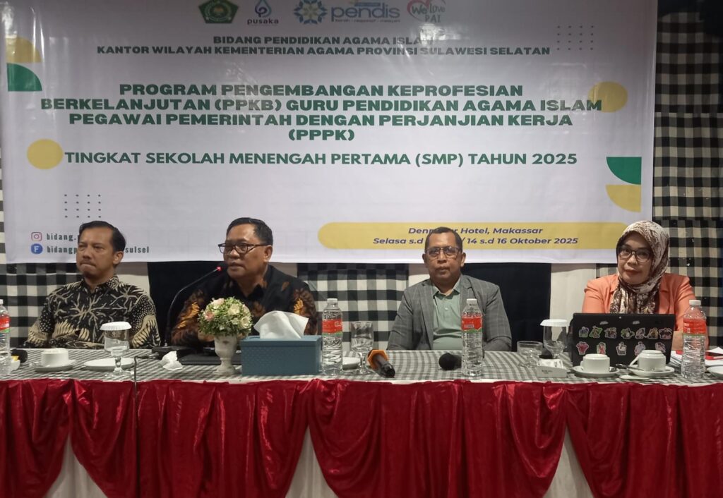 Ajakan ini disampaikan saat menutup Workshop Program Pengembangan Keprofesian Berkelanjutan (PPKB) bagi Guru Pendidikan Agama Islam (PAI) Pegawai Pemerintah dengan Perjanjian Kerja (PPPK) Tingkat Sekolah Menengah Pertama (SMP) Tahun 2025, di Denpasar Hotel Makassar, 16 Oktober 2025.