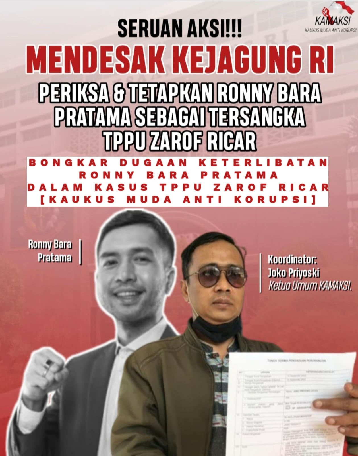 KAMAKSI Dukung Kejagung Bongkar Dugaan Keterlibatan Ronny Bara Pratama Dalam Kasus TPPU Zarof Ricar