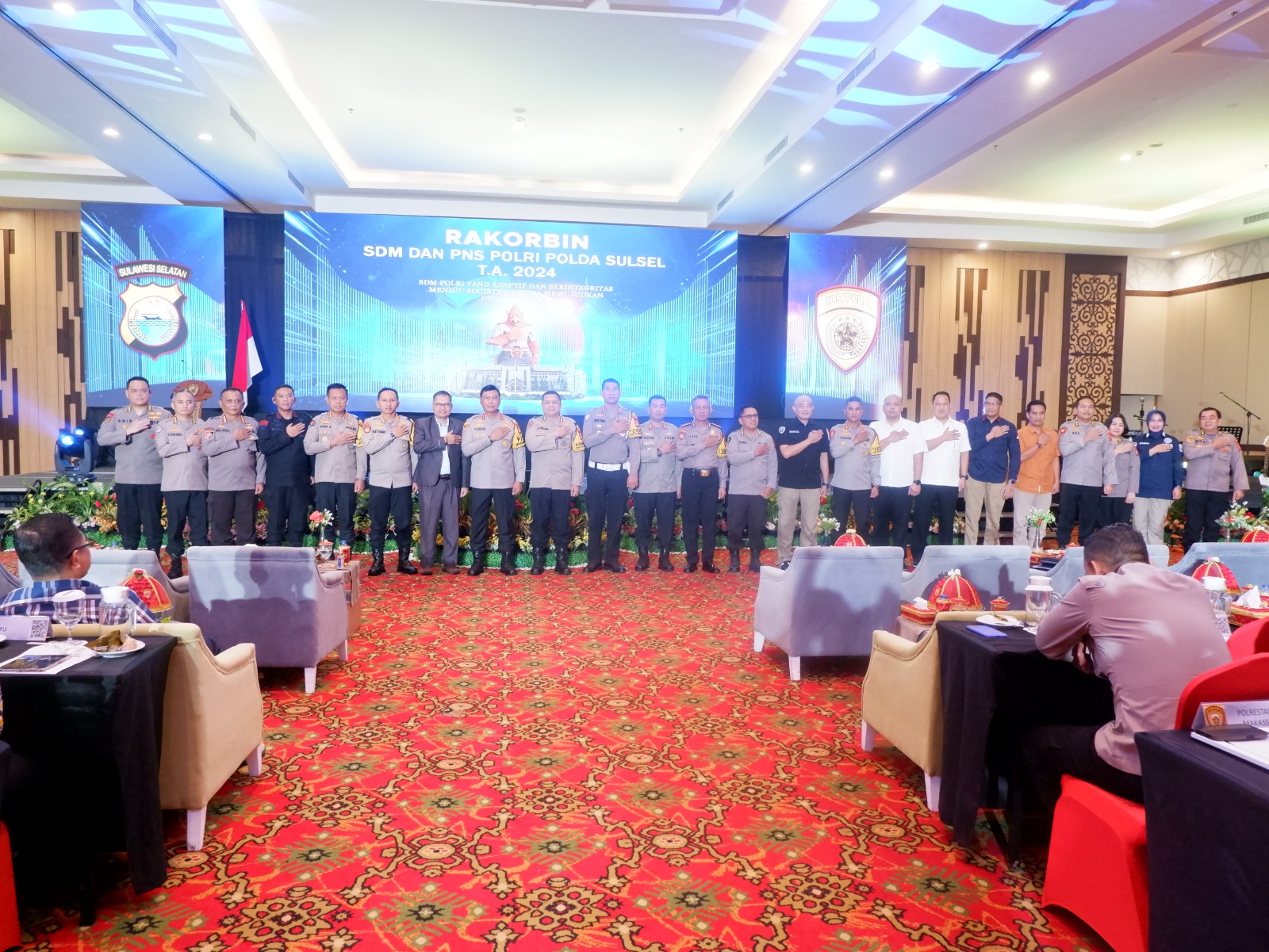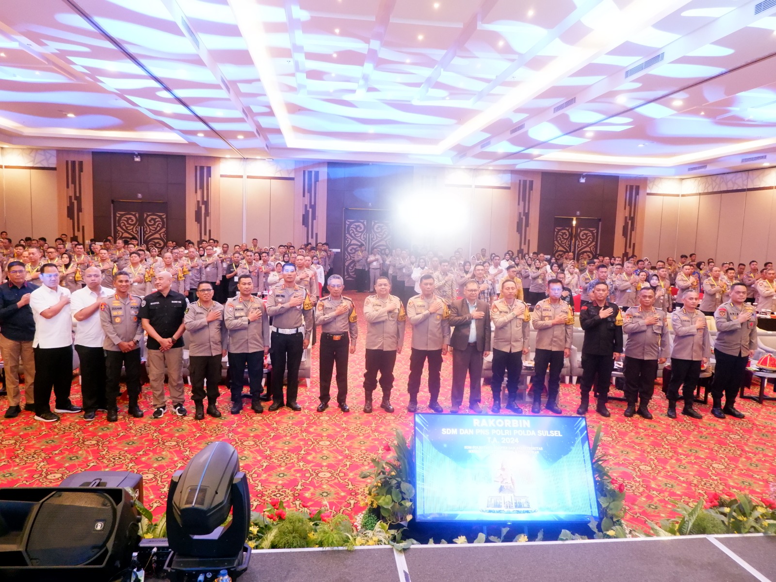 (Inspirator)-Kapolda Sulsel Irjen Pol. Yudhiawan S.H., S.I.K., M.H., M.Si., didampingi Pejabat Utama Polda Sulsel membuka secara resmi Rapat Koordinasi dan Pembinaan Sumber Daya Manusia (SDM) serta Pegawai Negeri Sipil (PNS) Polri Polda Sulsel Tahun Anggaran 2024. Kegiatan yang diadakan di Ballroom Balla Lompoa, Hotel Harper, Makassar,Kamis (31/10/24).