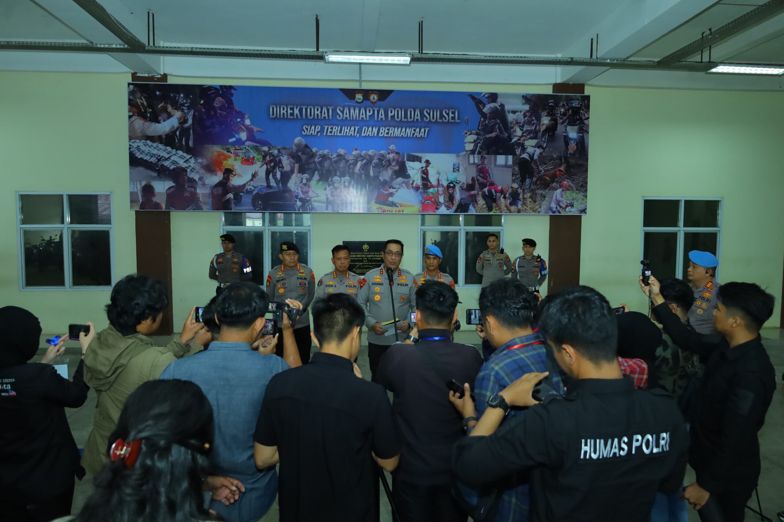 Mengawali keterangannya, Kapolda Sulsel menyampaikan terima kasih kepada rekan-rekan media yang telah hadir dan terus berperan aktif dalam mendukung kinerja kepolisian. Ia menjelaskan bahwa sebelumnya dirinya melaksanakan apel bersama personel Ditsamapta, sebagai bentuk kedekatan dan penguatan hubungan antara pimpinan dan anggota.