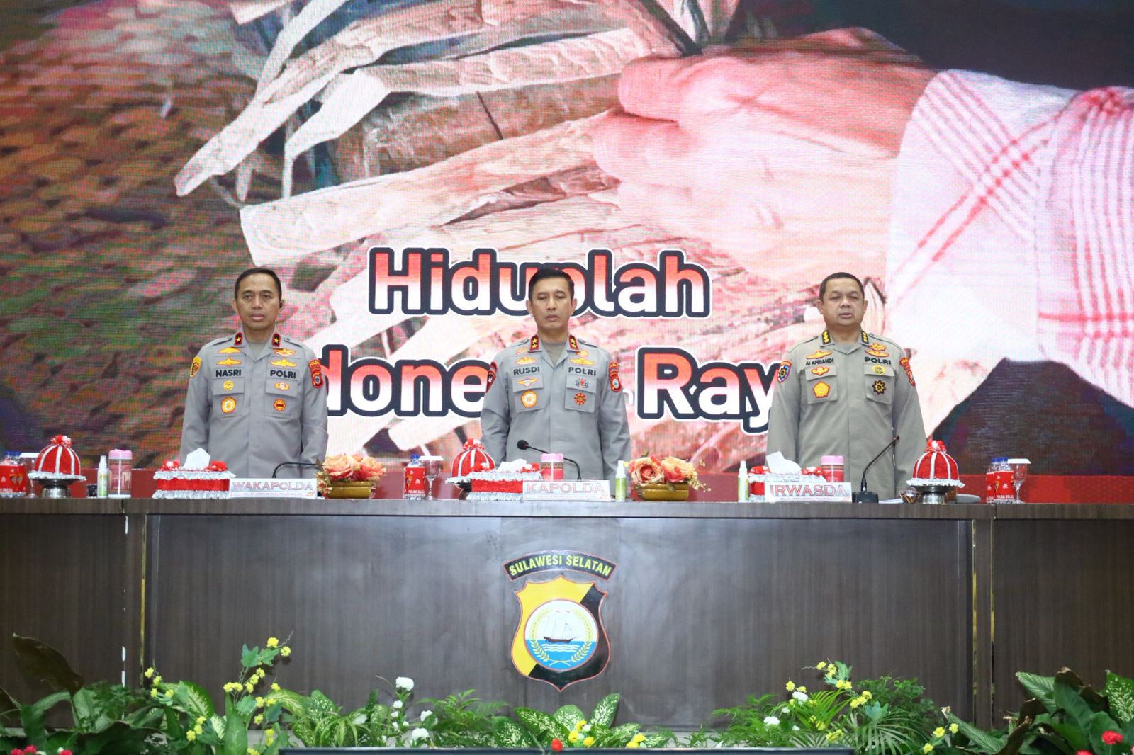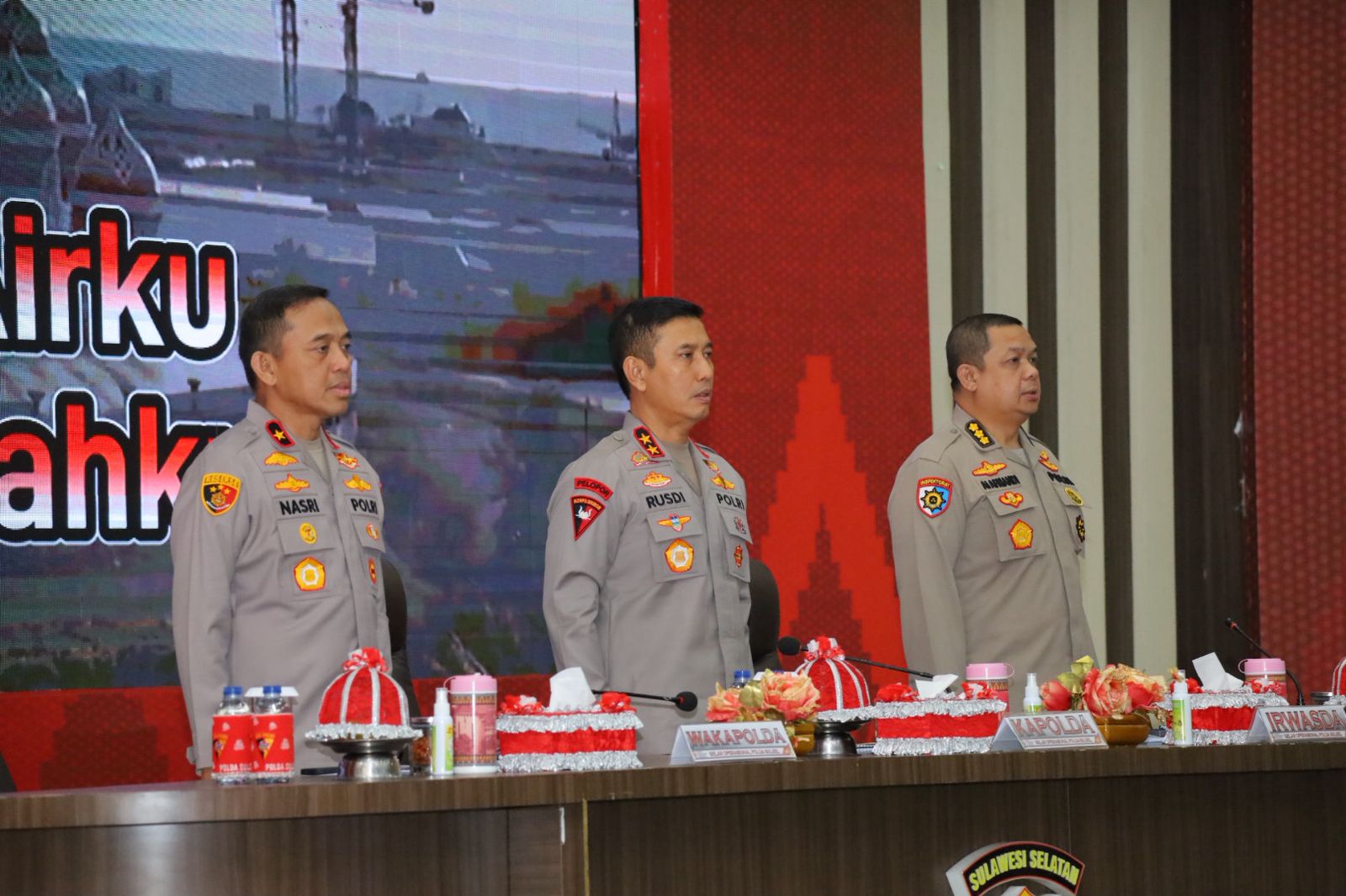 Dalam sambutannya, Kapolda Sulsel menyampaikan apresiasi atas kinerja seluruh jajaran yang telah berkontribusi dalam menjaga stabilitas keamanan di wilayah hukum Polda Sulsel. “Situasi yang semakin baik merupakan hasil kerja keras kita bersama dengan kesungguhan dalam melaksanakan tugas dan tanggung jawab,” ujarnya.