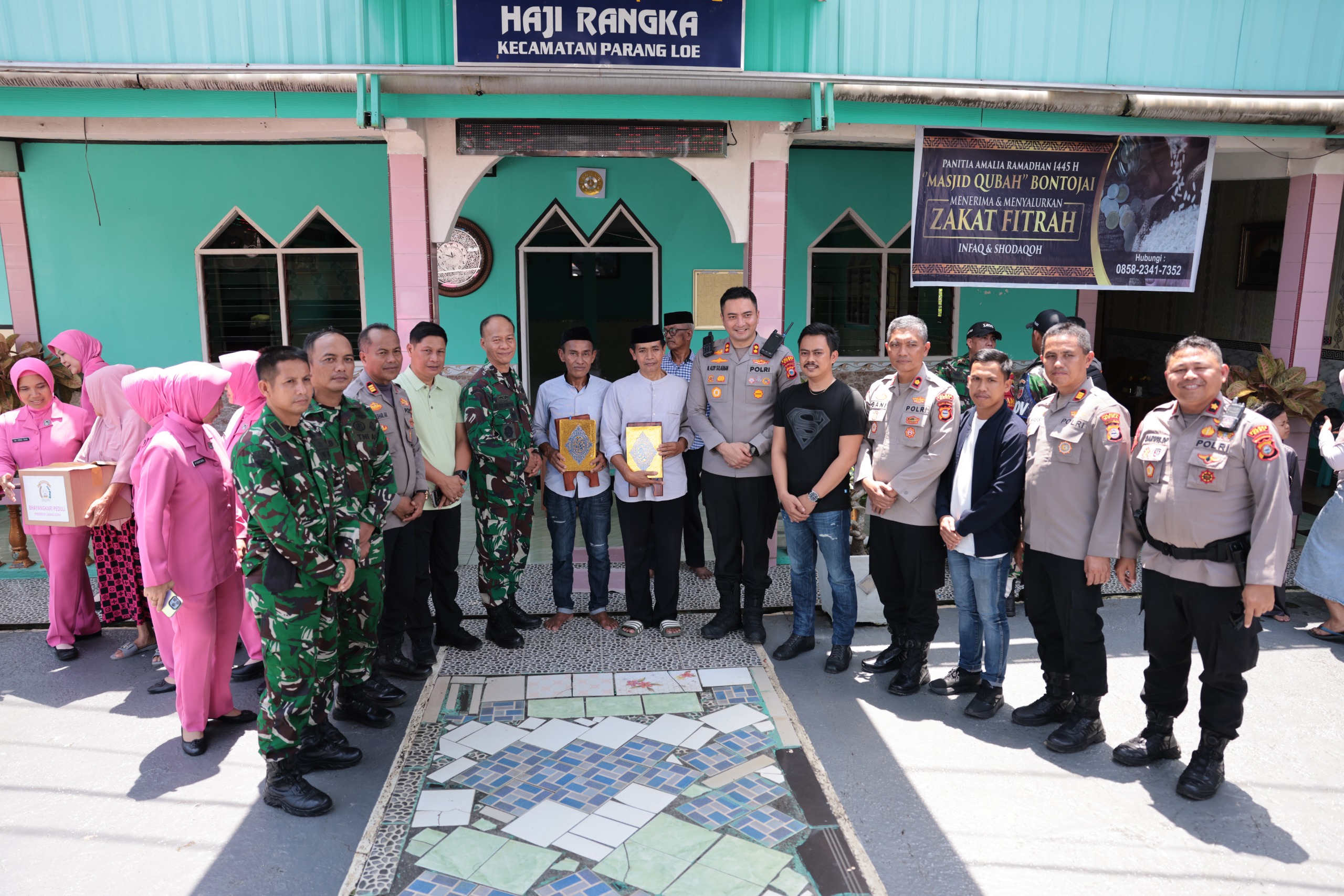 Setelah itu, rombongan melanjutkan perjalanan menuju Masjid Quba yang berada di rest area Bontojai, Desa Borisallo, Kecamatan Parangloe untuk menyerahkan bantuan sosial kepada pengurus masjid.