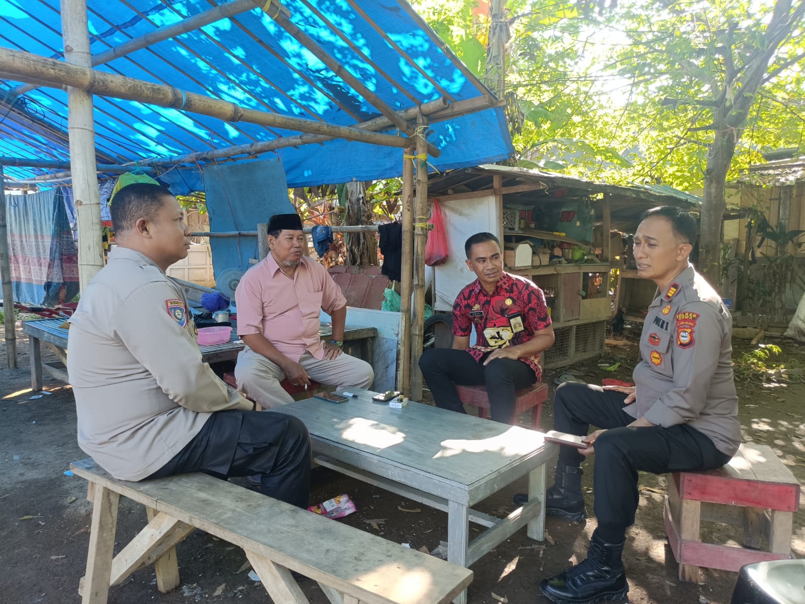 Disela sela sambang dan silaturahmi Kapolsek Somba Opu AKP Hambali menyelesaikan curhatan permasalahan yang di alami warga H. Alimuddin dg tiro atas keberatan Aiptu Ahmad Luis karena tidak terima ternak bebek di daerahnya