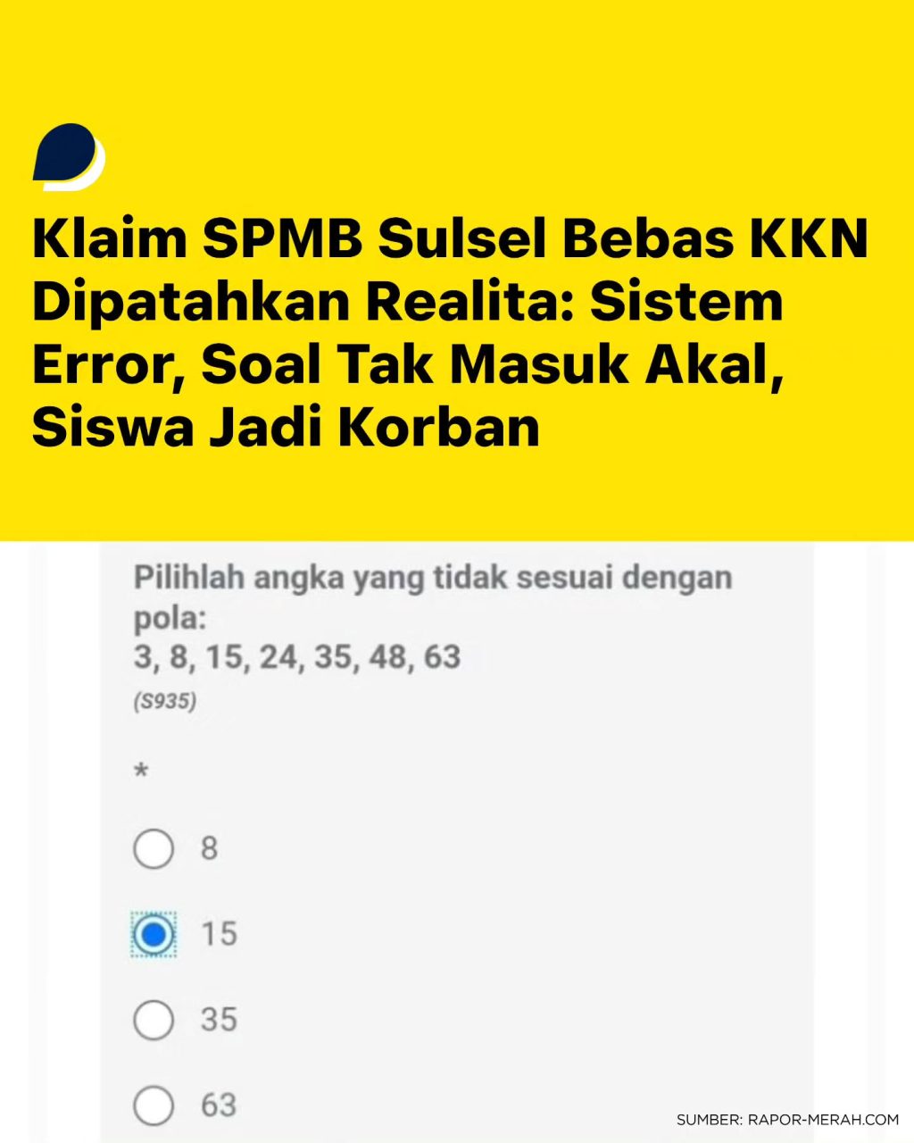 Klaim SPMB Sul-Sel Bebas KKN Di Patahkan Realita : Sistem Error, Soal Tak Masuk Akal, Siswa Jadi Korban
