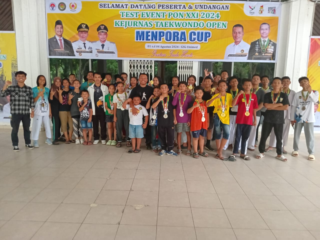 Medan (Inspirator)-|Komite Olah Raga (KONI) Kecamatan Pancur Batu meraih 15 Medali Emas dan 30 medali perak dalam kejuaraan nasional Taekwondo Menpora Cup yang berlangsung di Gedung Serbaguna Unimed pada 1-4 Agustus 2024.