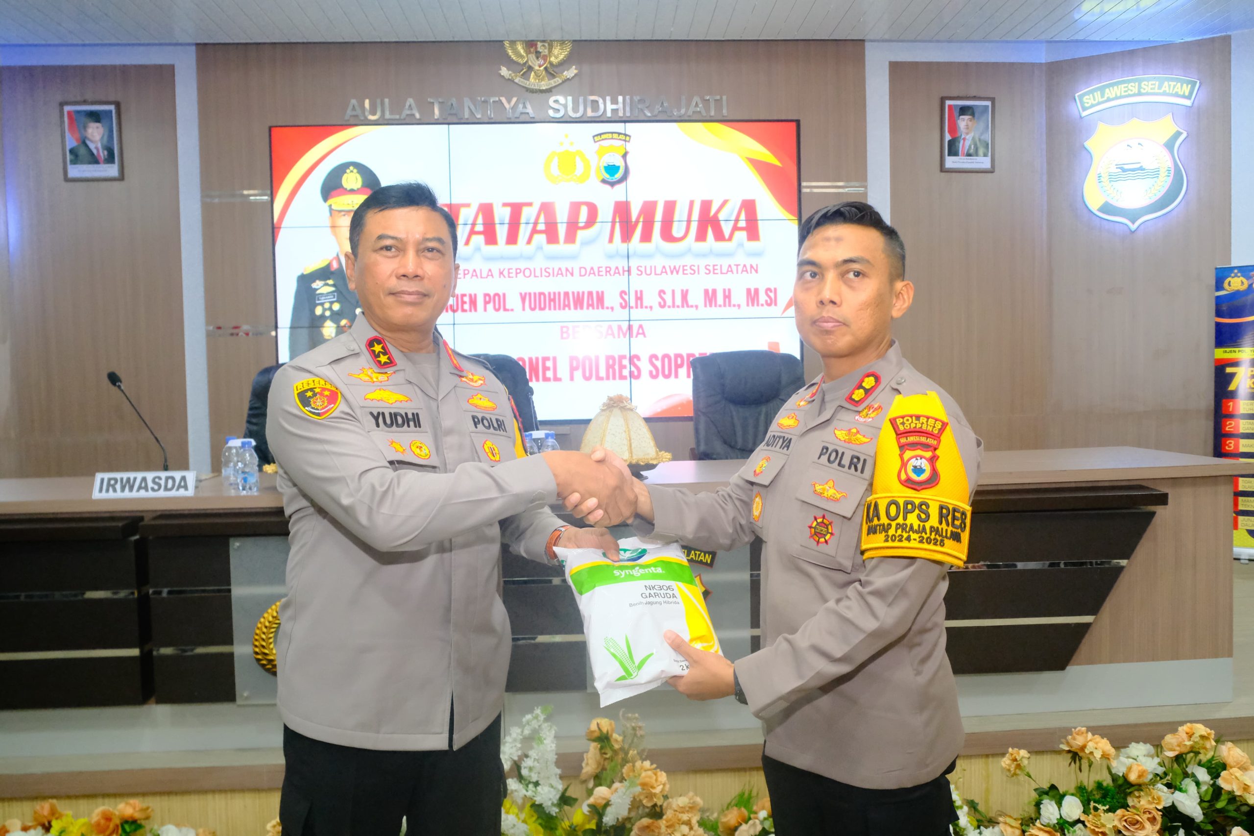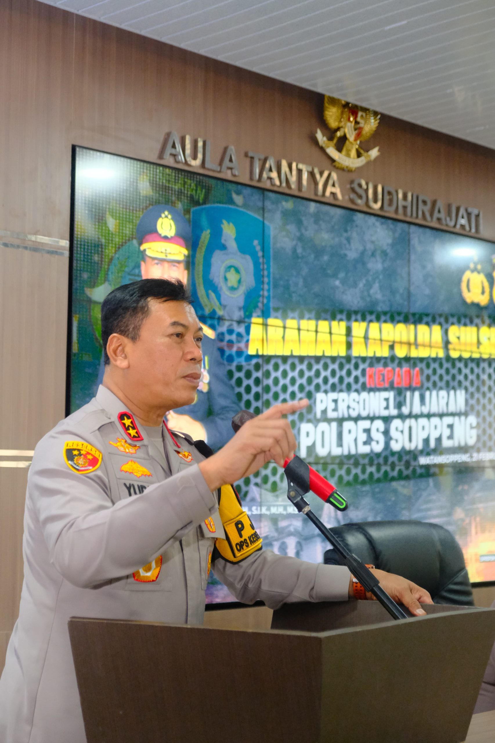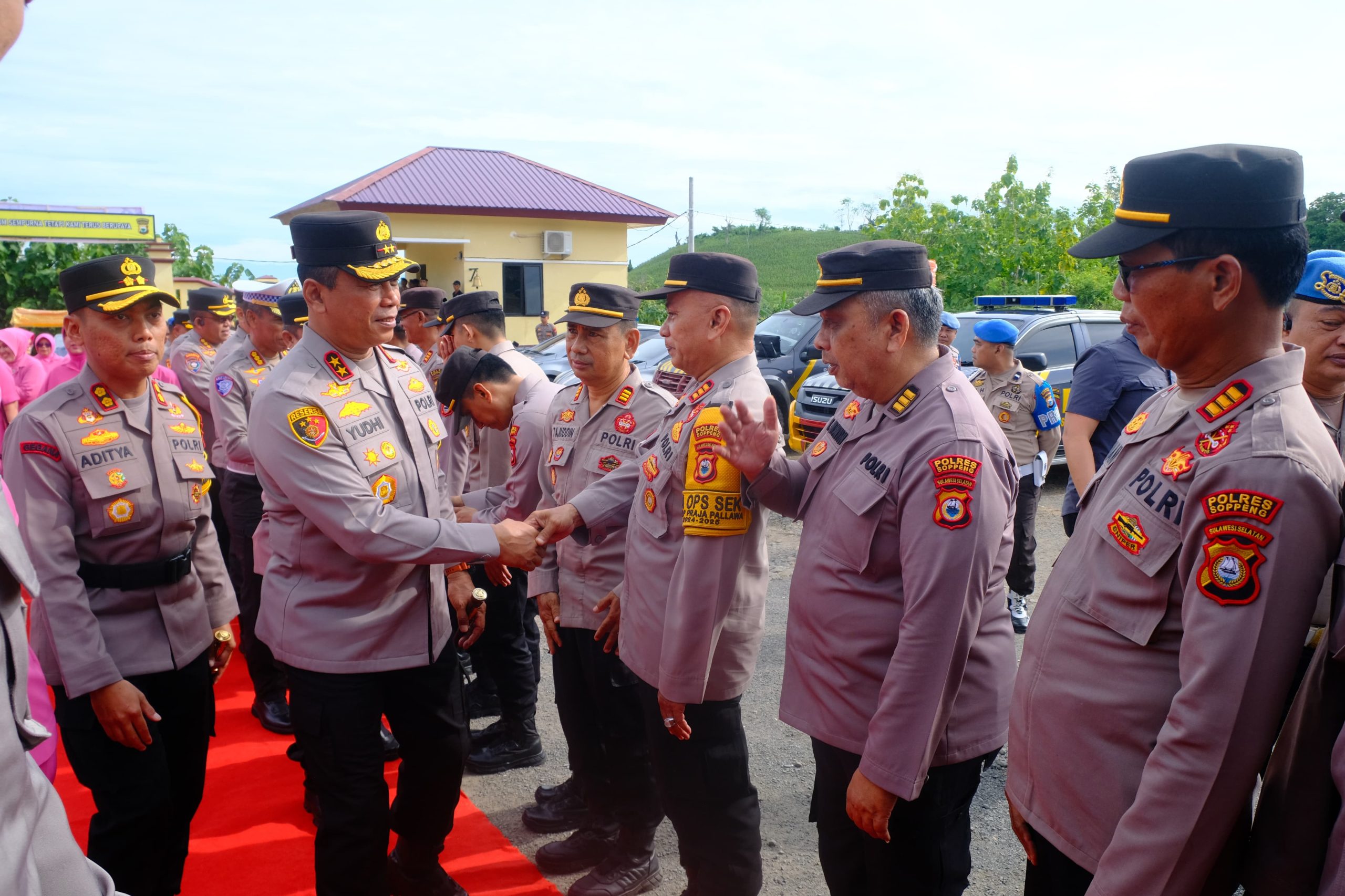 (Inspirator)-Kapolda Sulawesi Selatan, Irjen Pol. Yudhiawan S.H., S.I.K., M.H., M.Si., didampingi oleh Ketua Bhayangkari Daerah Sulsel, Ny. Yunita Yudhiawan, melaksanakan kunjungan kerja di Wilayah Hukum Polres Soppeng pada Jumat (21/02/25).