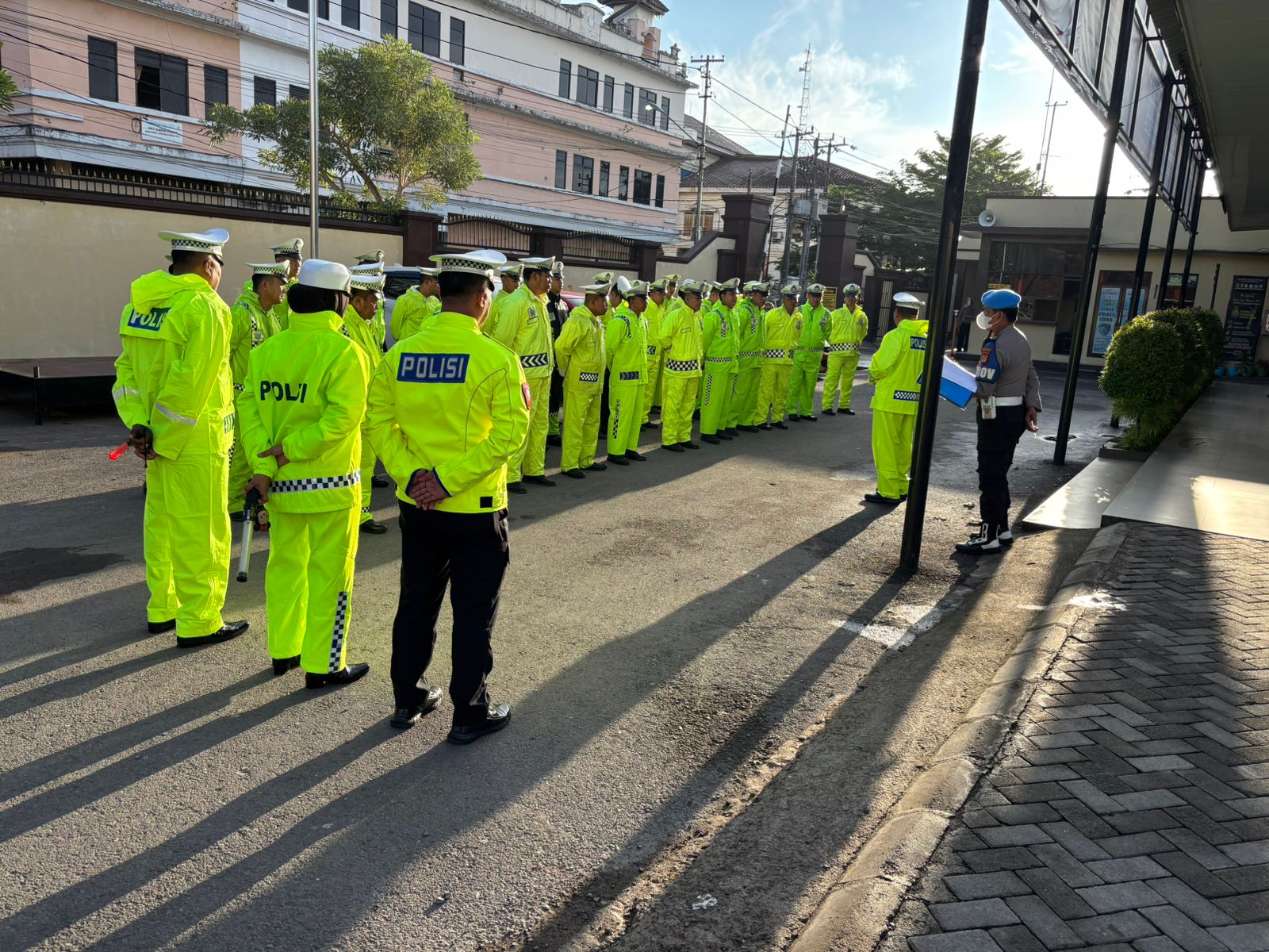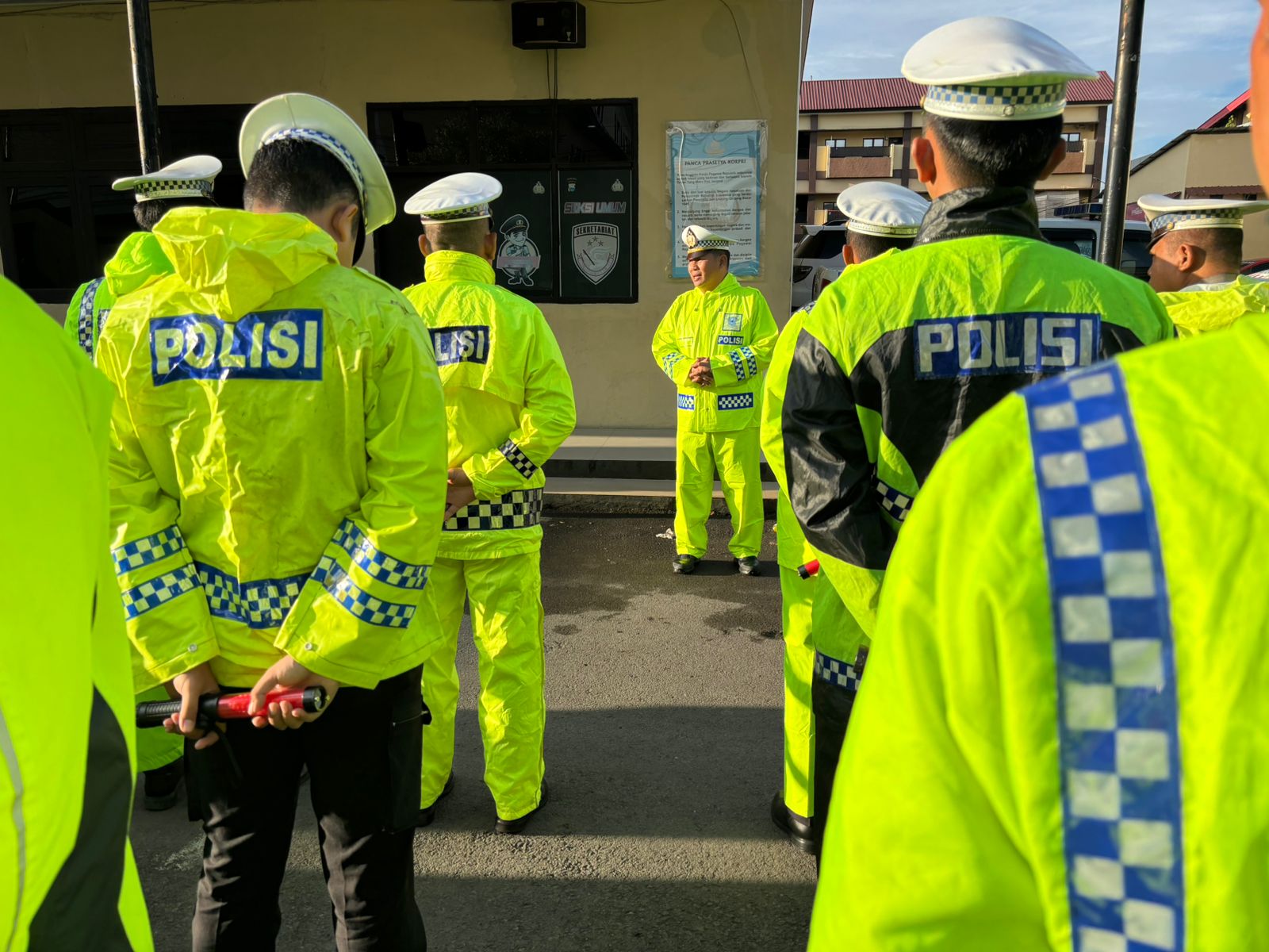 Lebih lanjut, Kasat Lantas juga memberikan motivasi kepada seluruh personel agar tetap semangat dan humanis dalam bertugas, meski harus menghadapi cuaca yang tidak bersahabat.