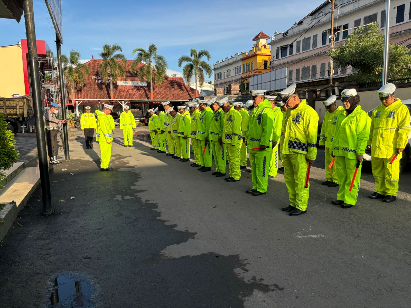 Pemeriksaan ini dilakukan untuk memastikan kesiapan seluruh personel dalam melaksanakan tugas pelayanan dan pengaturan lalu lintas di tengah kondisi cuaca yang mulai tidak menentu.