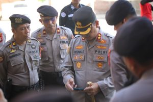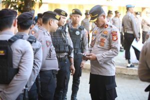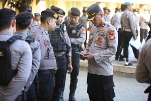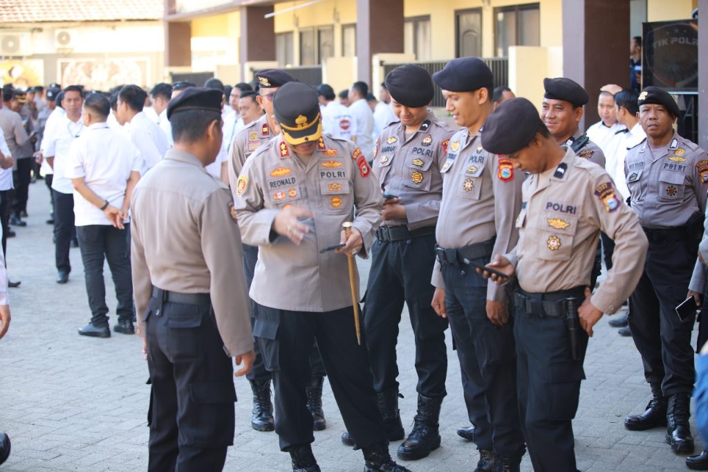 (Inspirator)-Gowa-Kapolres Gowa, AKBP R.T.S Simanjuntak, S.H., S.I.K., M.M., M.I.K., bersama Wakapolres KOMPOL Gani, S.H., M.H., serta para pejabat utama, melakukan pengecekan mendadak terhadap ponsel para personelnya, bertempat di Lapangan Apel Griya Bhayangkara Polres Gowa.