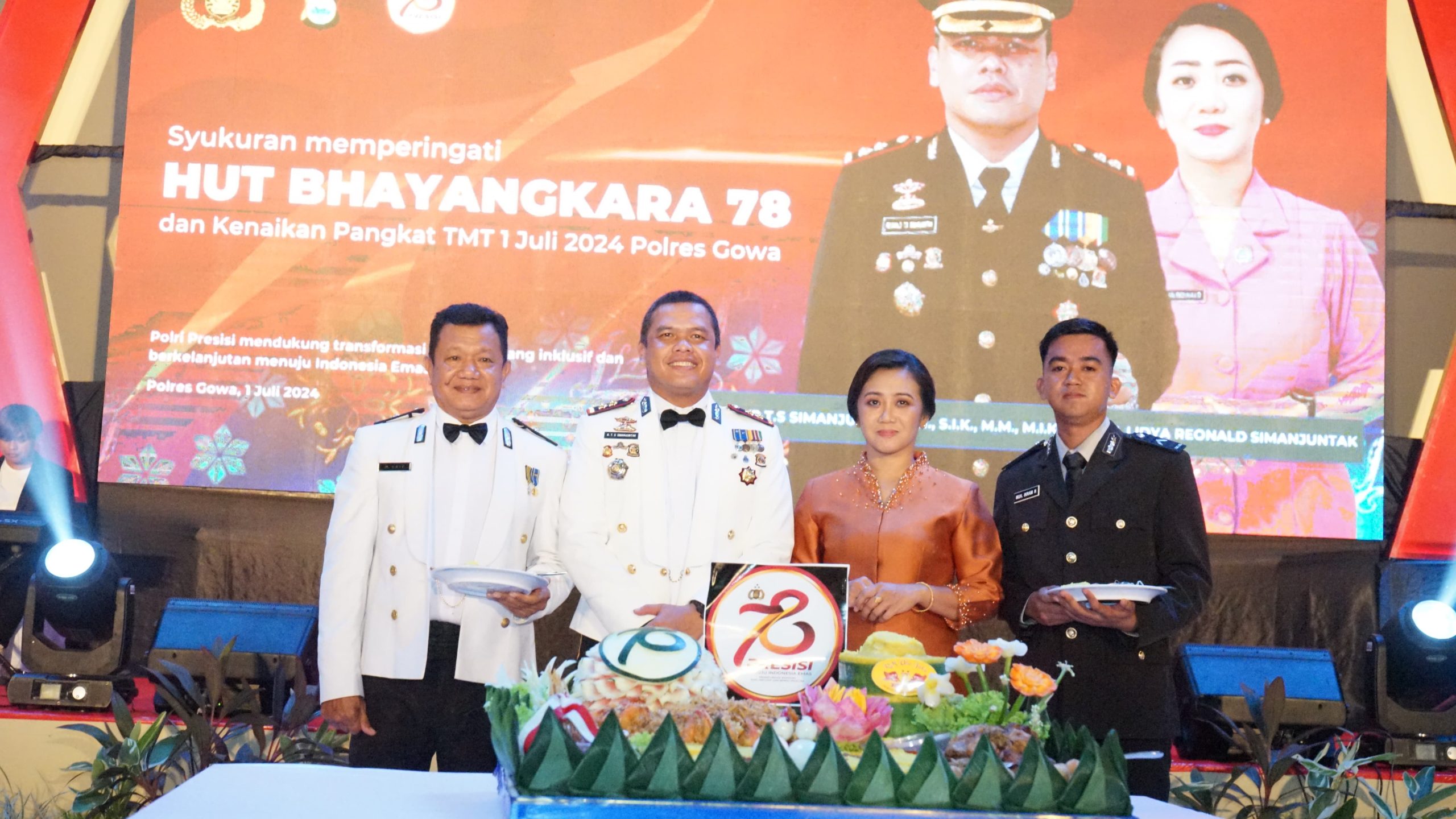 (Inspirator) Polres Gowa menggelar acara syukuran dalam rangka memperingati Hari Ulang Tahun (HUT) Bhayangkara yang ke-78, bertempat di Gedung Pelayanan Terpadu Polres Gowa, Senin (01/07/2024) Malam.