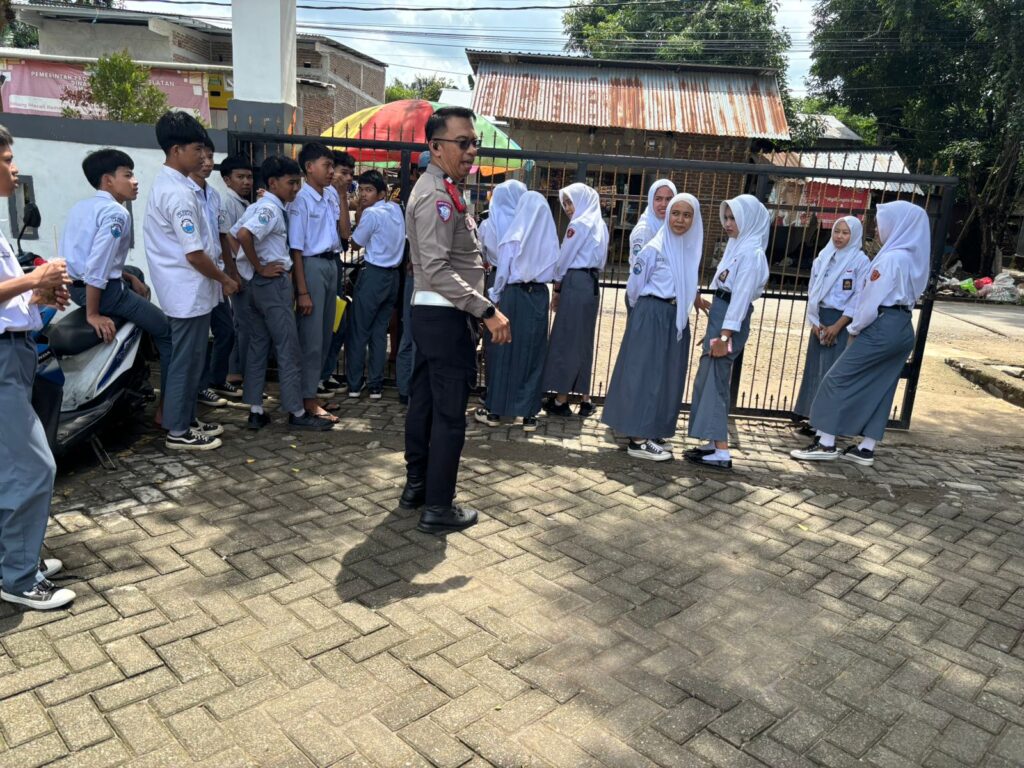 Dalam kegiatan tersebut, personel Kamsel AIPTU Ahriansyah tampil menyapa para siswa dengan ramah dan penuh kehangatan.