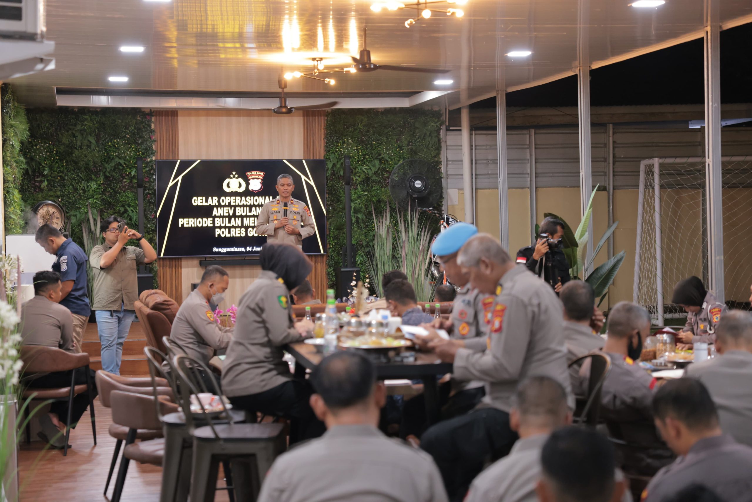 (Inspirator)-Polres Gowa melaksanakan kegiatan Operasional dan Analisa Evaluasi (Anev) bulanan untuk periode bulan Mei tahun 2025, pada Rabu (4/6/2025). Kegiatan ini dipimpin langsung oleh Kapolres Gowa, AKBP Muhammad Aldy Sulaiman, S.I.K., M.Si., dan didampingi oleh Wakapolres Gowa, KOMPOL Gani, S.H., M.H.