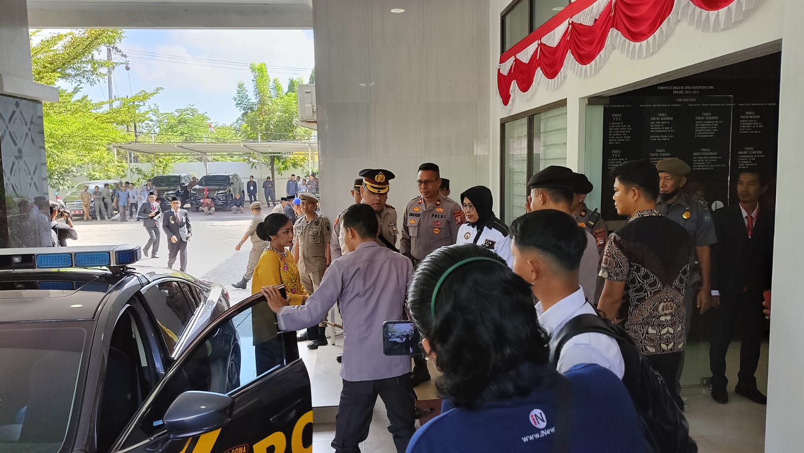 (Inspirator)-Kepolisian Resor Gowa terjunkan personilnya bersama Sat Pol PP dan Dinas perhubungan untuk pengamanan (PAM) pelantikan dan pengambilan sumpah janji anggota DPRD Kabupaten Gowa masa jabatan 2024-2029.