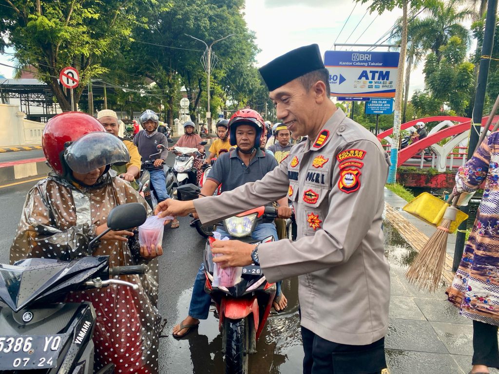 (Inspirator)-Takalar, 16 Maret 2025 – Dalam rangka menyemarakkan bulan suci Ramadhan, Polres Takalar melalui Seksi Pengawasan (Siwas) mengadakan kegiatan bakti sosial dengan membagikan takjil gratis kepada pengendara yang melintas.