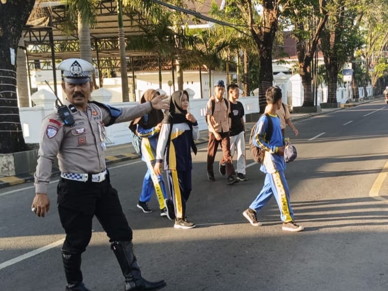 Dalam kegiatan ini, personel Satlantas juga turut membantu pelajar yang akan menyeberang jalan menuju sekolah, serta memberikan teguran persuasif kepada pengendara yang masih ditemukan melanggar aturan lalu lintas.
