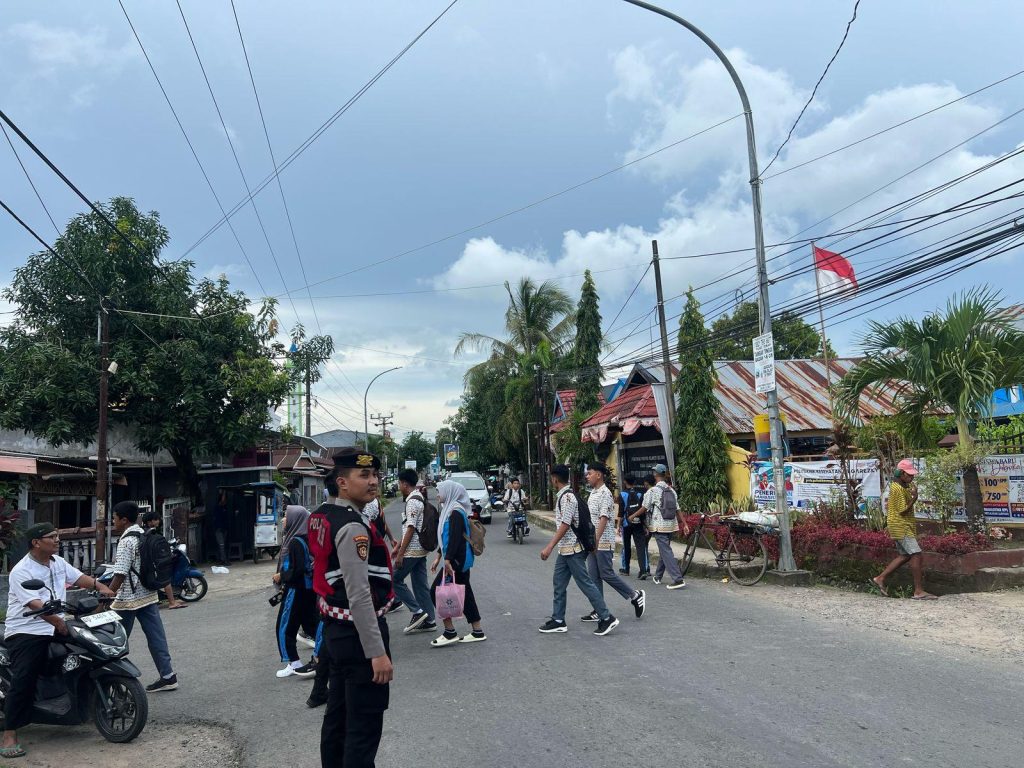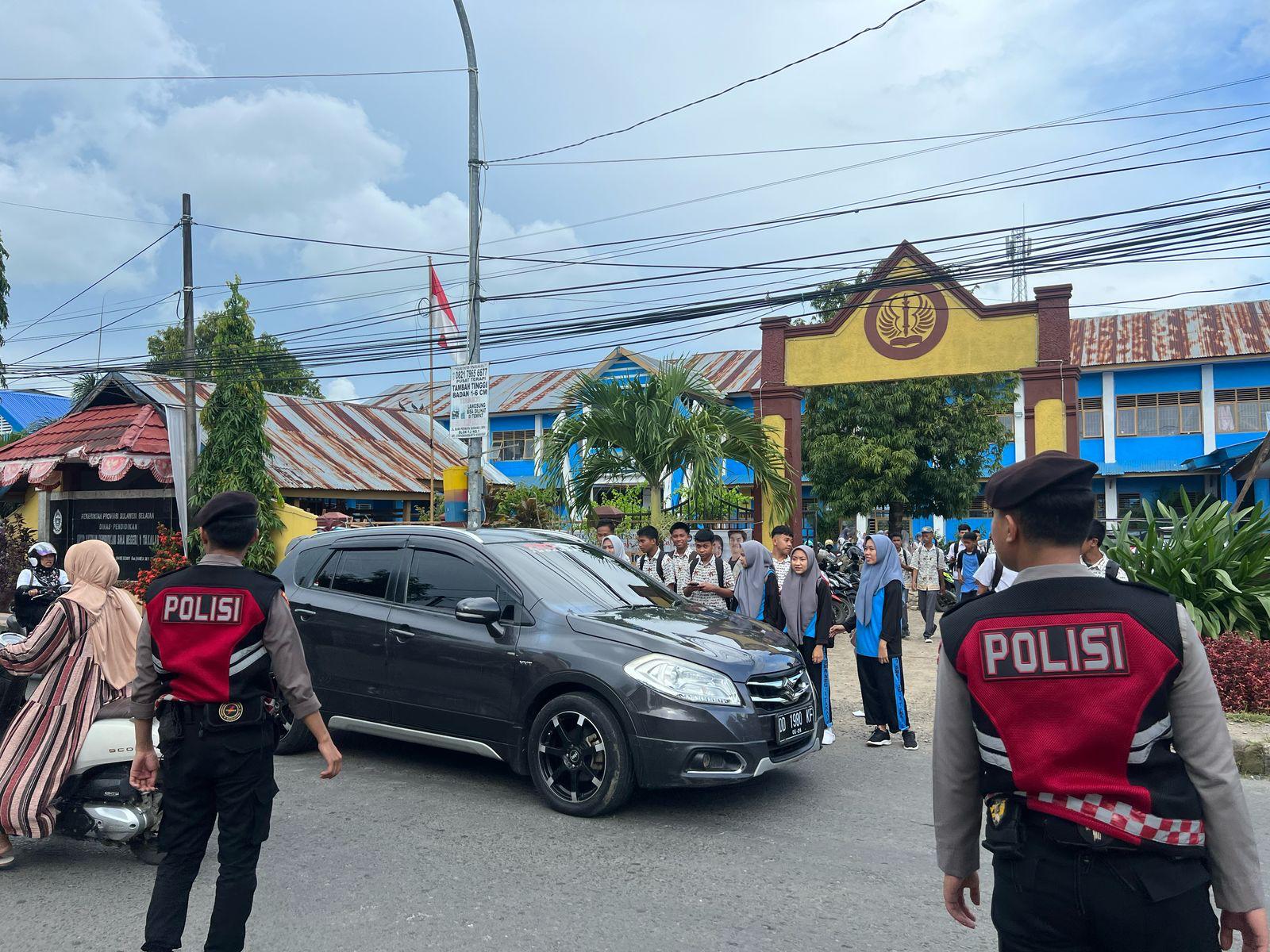 (Inspirator)-Takalar, Sulawesi Selatan – Untuk menjaga keamanan dan ketertiban masyarakat, khususnya di lingkungan sekolah, Anggota Perintis Presisi Regu 3 Sat Samapta Polres Takalar melaksanakan patroli dan pengaturan lalu lintas di depan SMA Negeri 3 dan SMA Negeri 1 Kabupaten Takalar pada Rabu (19/2) pukul 15.30 WITA.