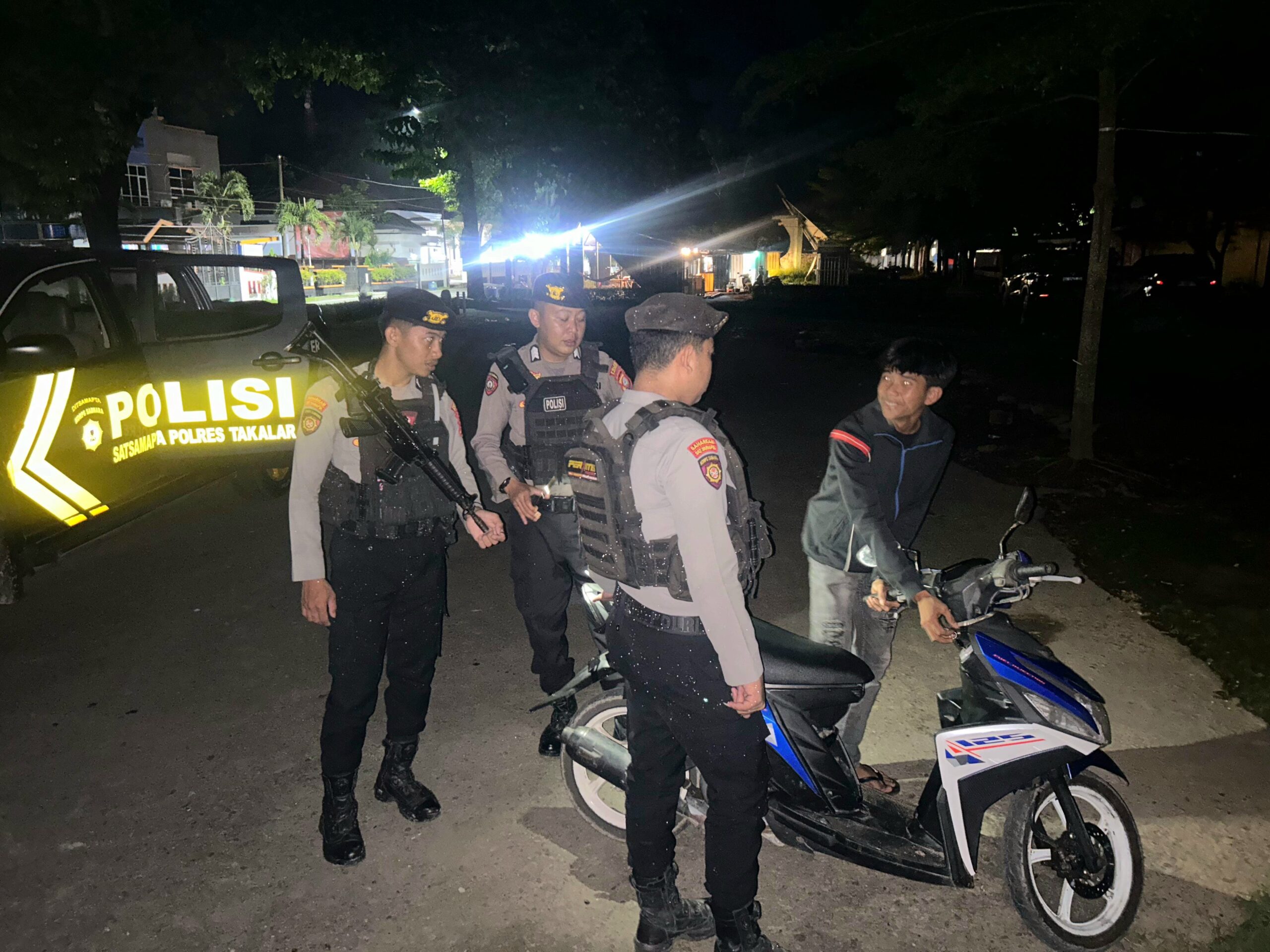 (inspirator)-Takalar – Dalam rangka menjaga situasi keamanan dan ketertiban masyarakat di malam hari, Personel Piket Patroli Perintis Presisi Sat Samapta Polres Takalar Regu II yang dipimpin Danru Brigpol Erwin Basri melaksanakan kegiatan Patroli Blue Light pada Rabu malam, 22 November 2025, dalam wilayah hukum Polres Takalar.