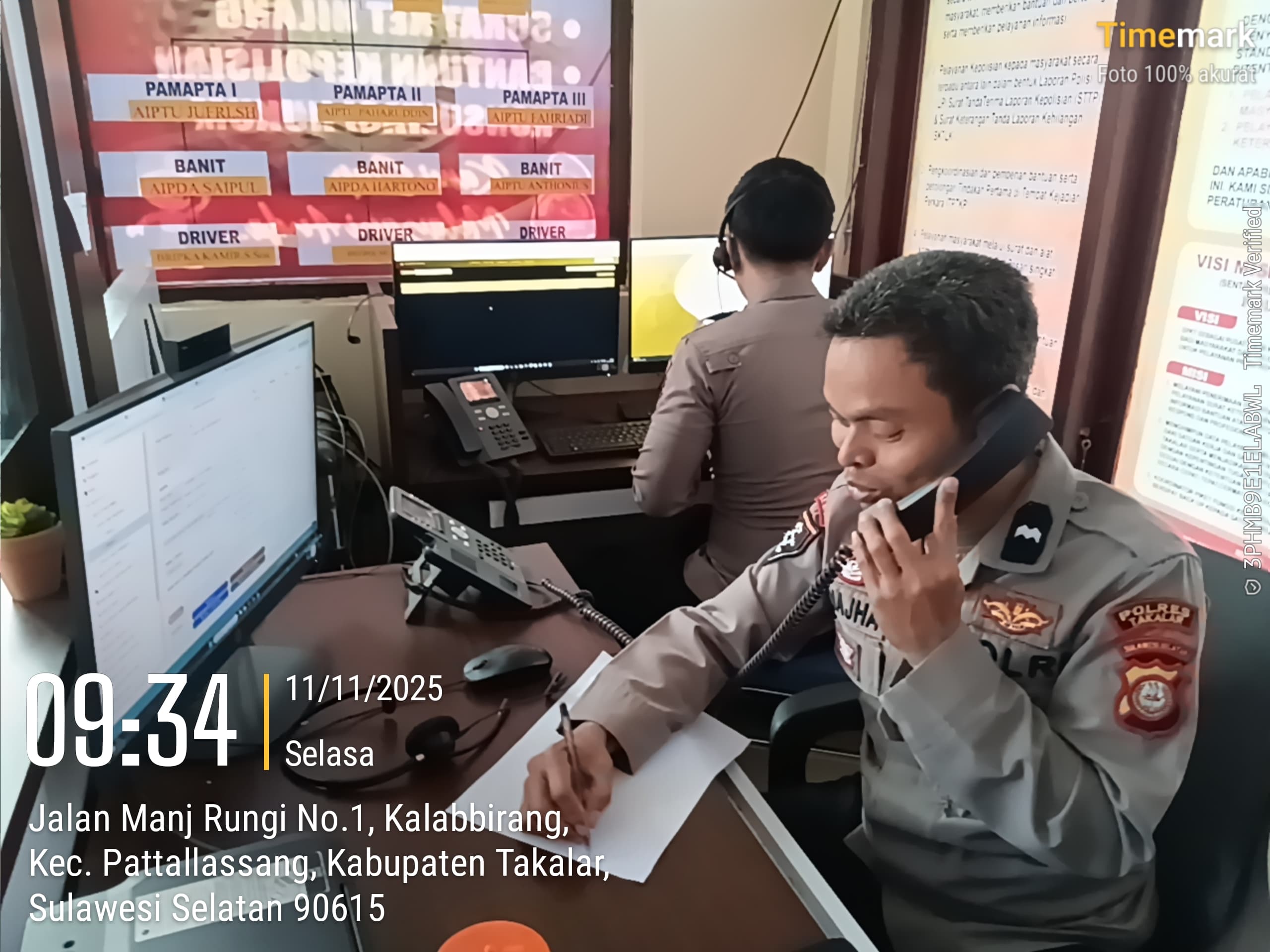 (Inspirator)-Takalar – Dalam upaya memberikan pelayanan terbaik bagi masyarakat, Kepolisian Resor (Polres) Takalar jajaran Polda Sulsel terus berinovasi dengan memaksimalkan fungsi Call Center 110 sebagai saluran cepat untuk menerima laporan dan pengaduan masyarakat. Layanan ini menjadi solusi praktis bagi warga yang membutuhkan bantuan kepolisian tanpa harus datang langsung ke kantor polisi. (11/11/25)