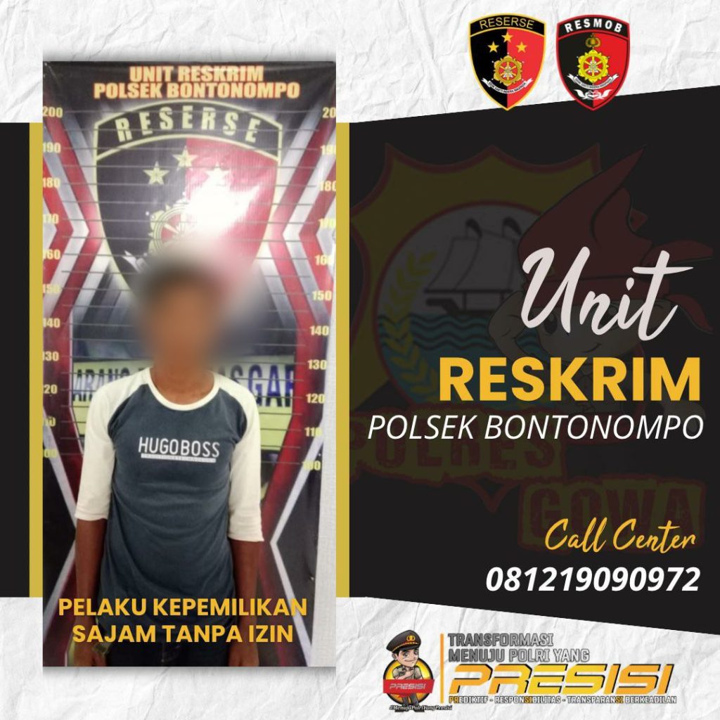 (Inspirator)-Personel Polsek Bontonompo, Polres Gowa, mengamankan seorang pria berinisial AR (36) yang kedapatan membawa senjata tajam jenis badik tanpa izin. Penangkapan dilakukan pada Senin (12/5) sekitar pukul 01.30 WITA di Dusun Tindang, Desa Tindang, Kecamatan Bontonompo Selatan, Kabupaten Gowa, Selasa (13/5).