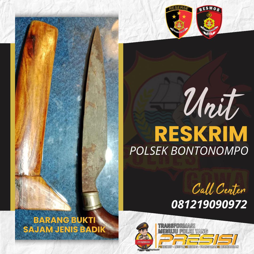 Polsek Bontonompo Tangkap Pria Bawa Badik Tanpa Izin di Bontonompo Selatan