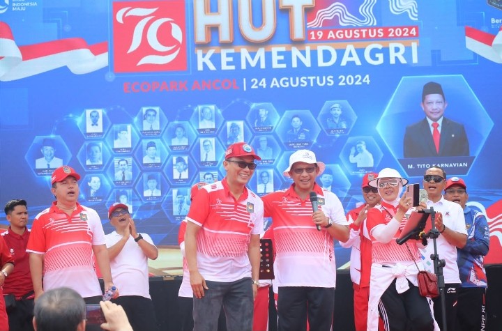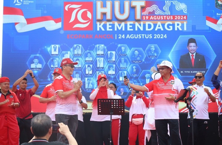 Hal itu disampaikan penuh keceriaan saat keluarga besar Kementerian Dalam Negeri melaksanakan jalan santai merayakan HUT RI-79 di EcoPark Ancol, Jakarta, Sabtu, 24 Agustus 2024.