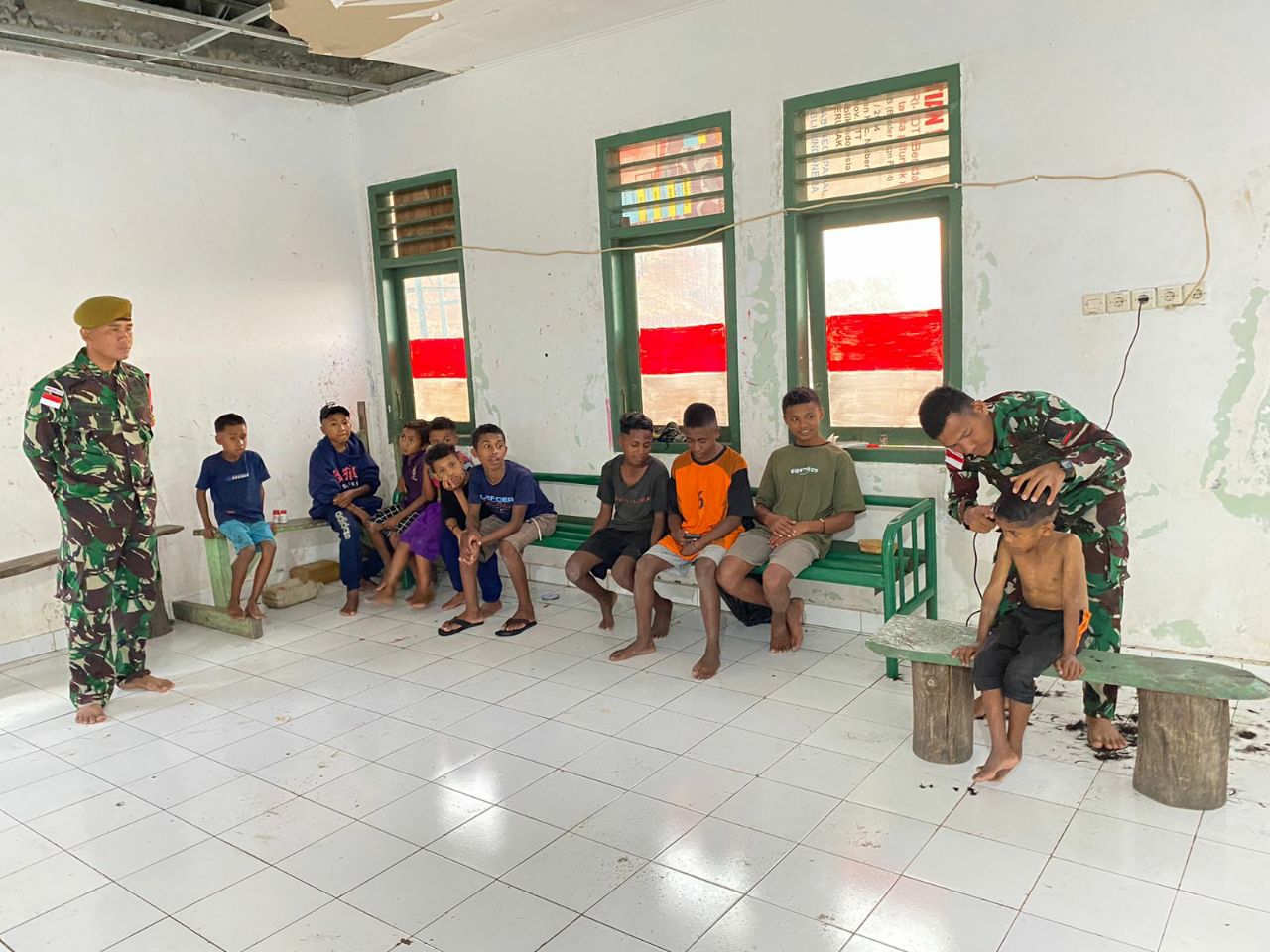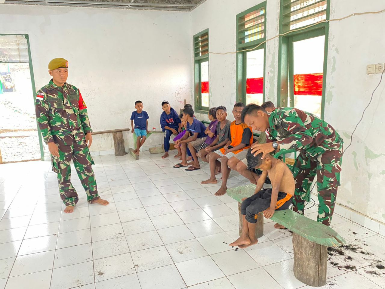 Satgas Pamtas RI-RDTL Sektor Barat Yonarhanud 15/DBY Gelar Potong Rambut Gratis di Pos Oelbinose