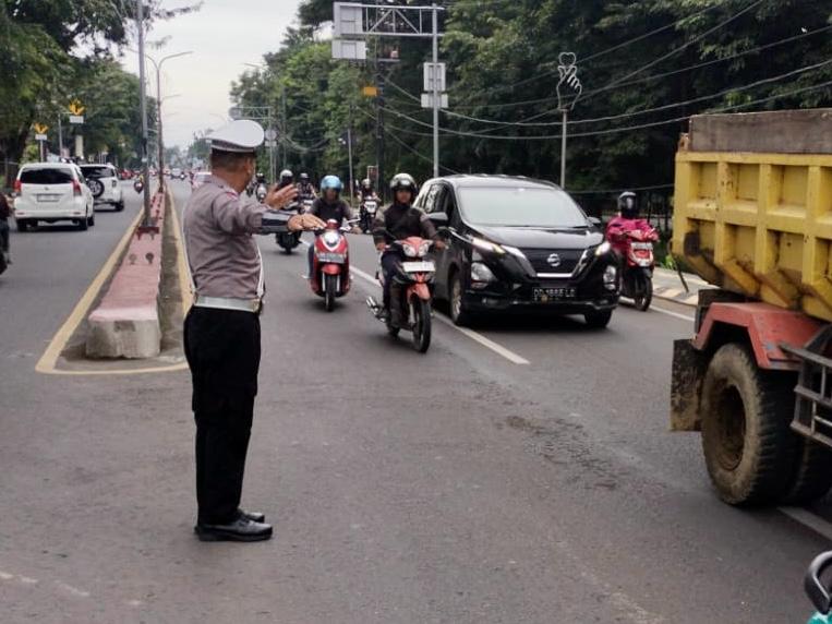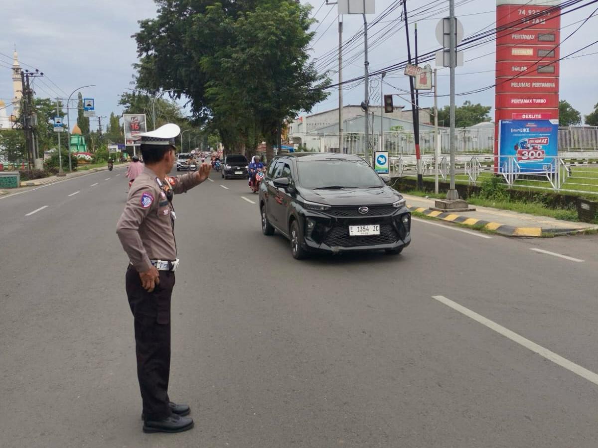 Personel Satlantas diterjunkan langsung untuk melakukan pengaturan arus lalu lintas, membantu kelancaran mobilitas masyarakat, serta memberikan edukasi kepada pengendara terkait pentingnya mematuhi aturan berlalu lintas.