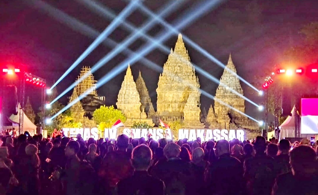 Sekitar kurang lebih 5.000 orang berjejal memadati Lapangan Brahma yang terletak di area depan Candi Prambanan, Kabupaten Sleman, Daerah Istimewa Yogyakarta (DIY), tempat berlangsungnya hajatan spektakuler bertajuk “Gala Dinner Temu Nasional (Tenas) IV Tahun 2025 Ikatan Alumni SMA Negeri 1 (IKA SMANSA) Makassar”, Sabtu (6/9/2025) malam.