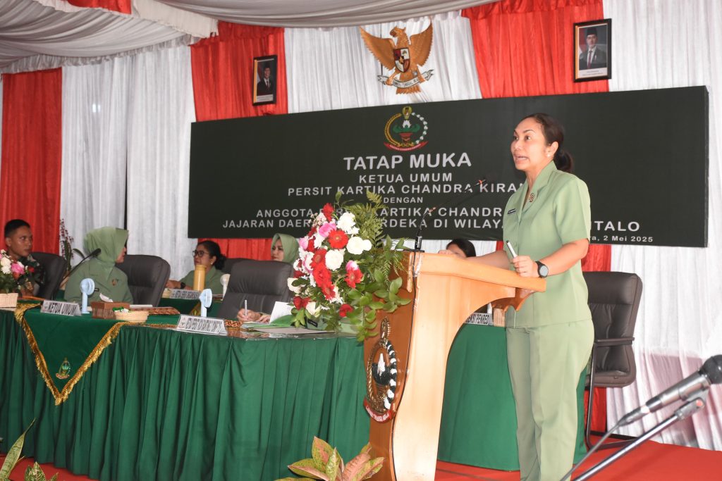Inspirator, gorontalo – Ketua Umum (Ketum) Persit Kartika Chandra Kirana, Ibu Uli Simanjuntak, pada hari Kamis 1 Mei 2025 belum lama ini telah melaksanakan tatap muka yang hangat dan penuh kekeluargaan dengan anggota Persit Kartika Chandra Kirana jajaran Daerah XIII/Merdeka yang bertugas di wilayah Gorontalo, Acara yang berlangsung di Mako Yonif R 715/Motuliato, di Desa Tolongio Kecamatan Anggrek Kabupaten Gorontalo Utara. Jum’at (04/5/2025),