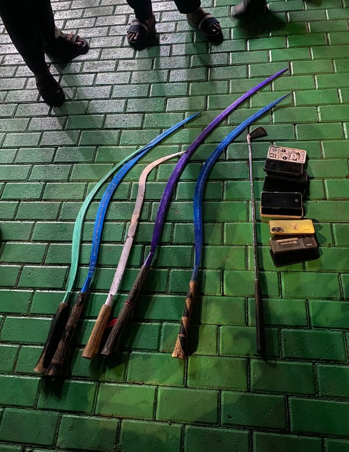 Dalam pengamanan tersebut, petugas menemukan sejumlah barang bukti berupa 4 (empat) buah celurit, 2 (satu) buah corbek, dan 1 (satu) buah stik golf.