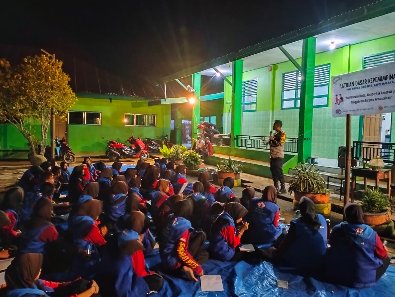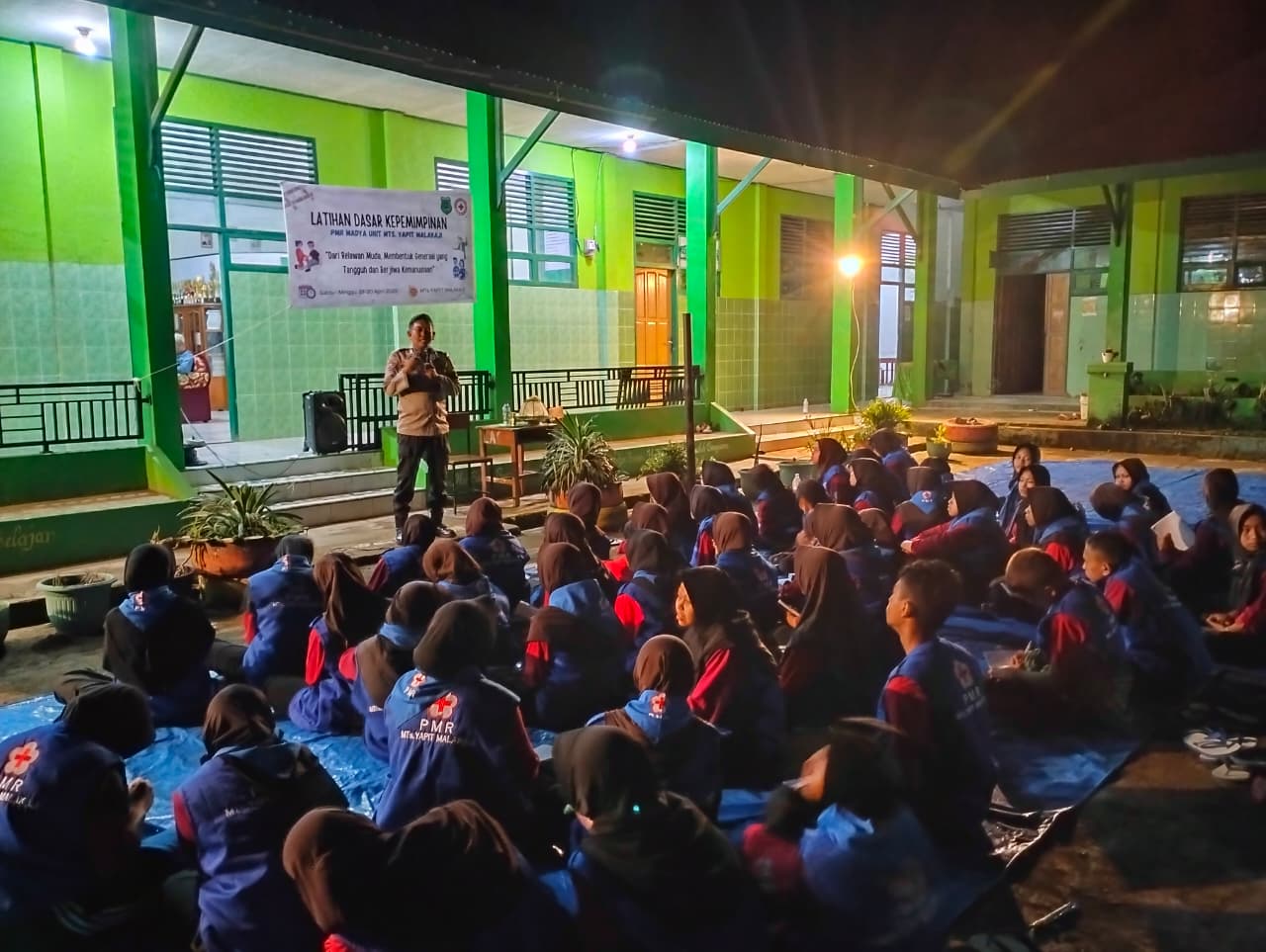 (Inspirat)-Dalam rangka menumbuhkan kesadaran hukum dan disiplin sejak dini, Bhabinkamtibmas Desa Bontobuddung dan Kelurahan Malakaji Polsek Tompobulu Polres Gowa BRIPKA Edi Brata, pada Sabtu (19/4/2025), malam memberikan penyuluhan kepada siswa-siswi dalam kegiatan Latihan Dasar Kepemimpinan (LDK) PMR Madya Unit MTS. YAPIT Malakaji.