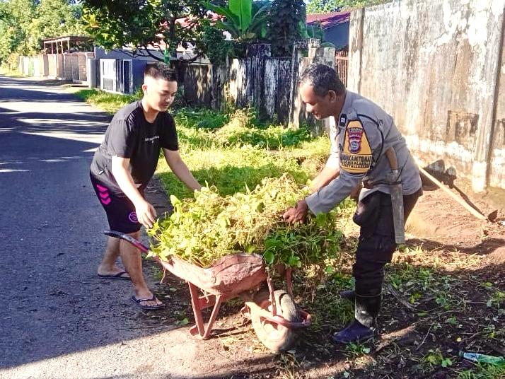 Tolak Miras dan Judi, Bhabinkamtibmas Tekankan Harkamtibmas Saat Kerja Bakti