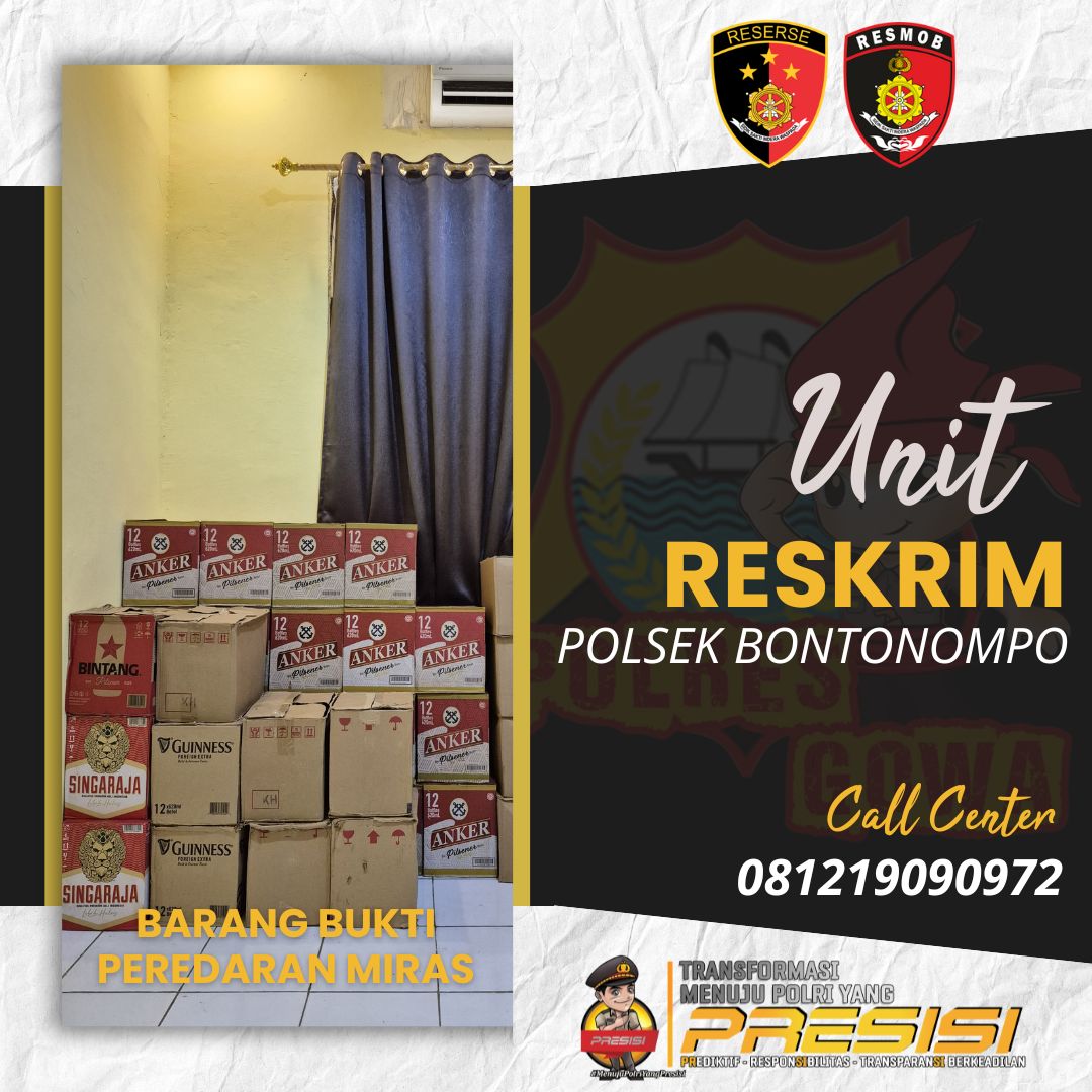 Unit Reskrim Polsek Bontonompo Ungkap Peredaran Miras Botolan, 580 Botol Diamankan
