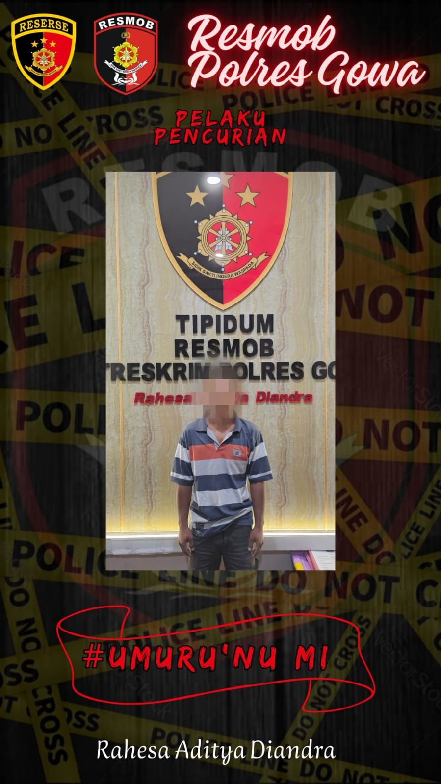 (Inspirator)-Unit Resmob Satreskrim Polres Gowa yang dipimpin oleh Kanit Resmob IPDA Andi Muhammad Alfian, S.H., berhasil mengamankan seorang pria berinisial R (31), terduga pelaku tindak pidana pencurian, pada Rabu (9/4/2025) sekitar pukul 01.00 WITA di Desa Paku, Kelurahan Julubori, Kecamatan Pallangga, Kabupaten Gowa, Rabu (9/4/2025).