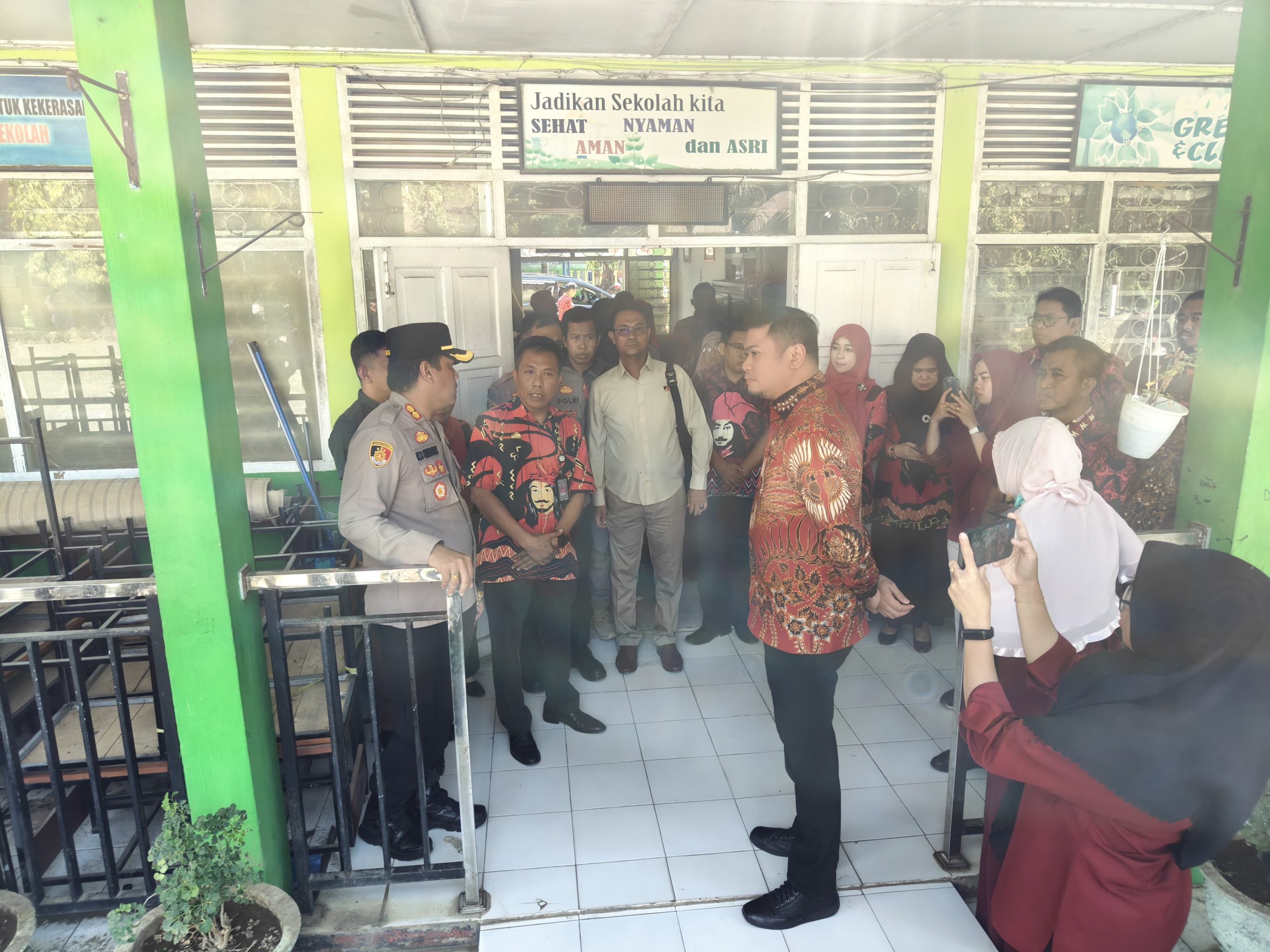 (Inspirator)-Kapolres Gowa AKBP R.T.S Simanjuntak, S.H., S.I.K., M.M.,M.I.K bersama Bupati Gowa Dr. Adnan Purichta Iksan, S.H., M.H., mengunjungi SMP Negeri 3 Sungguminasa di Kelurahan Romang Polong, Kecamatan Somba Opu, Kabupaten Gowa, Kamis (29/08/2024).